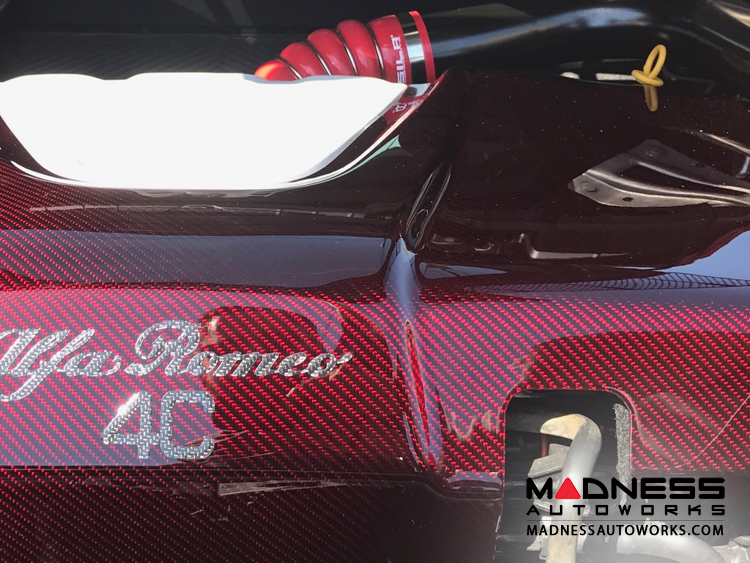 The Carbon Fiber Engine Cover comes in two styles, choose between a Red Carbon Fiber Cover with Alfa Romeo 4C emblem in Carbon Fiber or the Red Carbon Fiber Cover with no emblem.