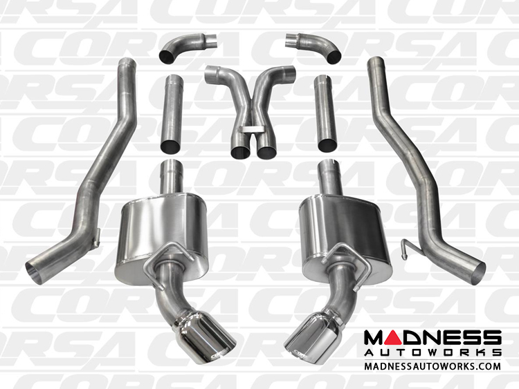 Corsa Sport exhaust systems strive to achieve the most power possible with a straight-through, non-restrictive design. At the same time their patented reflective sound cancelation technology (RSC) is in place to ensure any low frequencies that cause droning are non existent thus leaving you with a crisp, clean sound. While reducing back pressure, creating more power and tone, these top of the line Corsa exhaust systems are manufactured from premium stainless steel, with true mandrel bends and tips polished to a shine. These performance exhaust systems are meastured twice and constructed once to ensure that a perfect fit is attainable every time. Best of all, all of Corsa Performance exhaust systems are proudly manufactured in the USA!