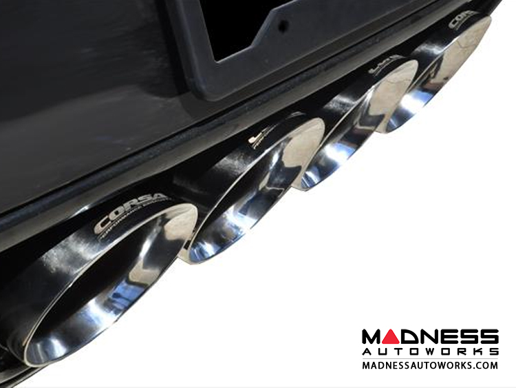 Corsa exhaust systems strive to achieve the most power possible with a straight-through, non-restrictive design. At the same time their patented reflective sound cancelation technology (RSC) is in place to ensure any low frequencies that cause droning are non existent thus leaving you with a crisp, clean sound. While reducing back pressure, creating more power and tone, these top of the line Corsa exhaust systems are manufactured from premium stainless steel, with true mandrel bends and tips polished to a shine. These performance exhaust systems are meastured twice and constructed once to ensure that a perfect fit is attainable every time. Best of all, all of Corsa Performance exhaust systems are proudly manufactured in the USA!