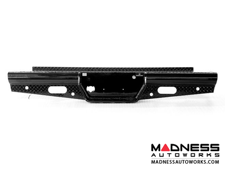 Hand built by Americans in South Texas, these bumpers are built to last, using only the toughest bumper materials, like schedule 40 piping and diamond plate steel, and most the advanced build techniques, such as a one-piece welded design. Featuring explosively bright auxiliary LED lights to aid when hooking up your trailer or backing into dark job sites. These rear bumpers are also sensor compatible and retain the factory hitch for almost every model.