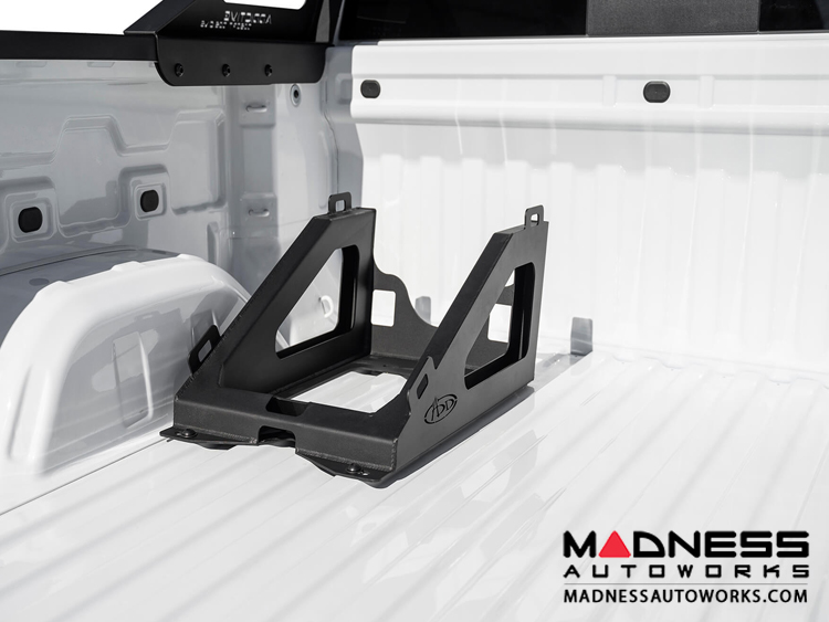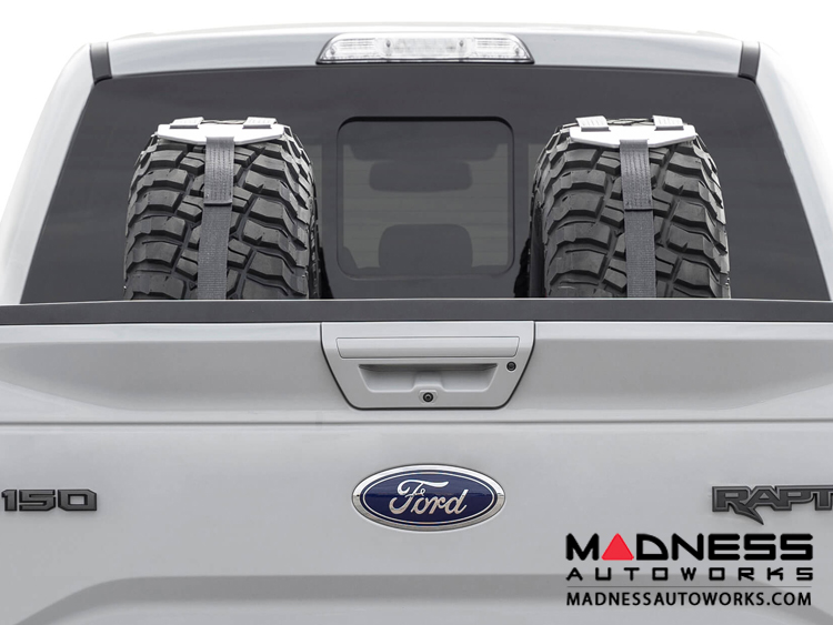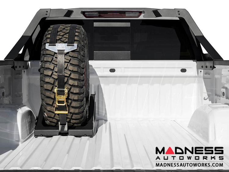 Carrying a spare tire in the OEM location with a modified truck is sometimes impossible. Our universally designed tire carrier that will fit most modern truck beds fixes this problem. With the ability to hold a 33" to 40" tire, up to 14" actual tire width measurement, our universal tire carrier installs into your truck bed to hold your spare.