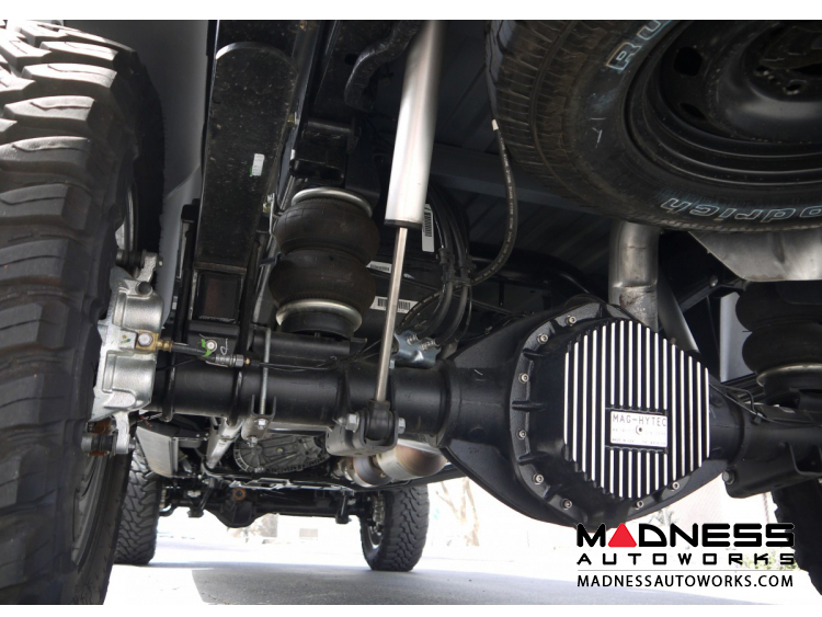 This entry level system is great for towing, rough construction site terrains, and country dirt roads all while keeping a smooth highway feel. Installing this kit allows proper clearance for 35" tall tires with no modifications, and some 37" tires with minor fender well trimming for clearance.