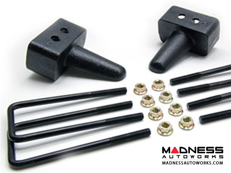 Constructed off of OEM designs and only high quality materials, these 3” Ford F-150 Blocks have Integrated OEM Style Bump Stop Landings and cast in center pins. With this kit you can add a slight rake to your truck for whatever your needs and are made to work in conjunction with your ReadyLIFT Suspension Leveling Kit. Best of all, installation is a breeze and would take the average wrencher a little over an hour to install.