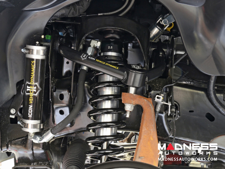 Manufacturers engineers’ primary focus is to increase wheel travel and damping ability, which translates into outstanding vehicle control and ride quality both on and off-road. The Stage 2 system includes vehicle-specific tuned 2.5” coil over shocks featuring an internal reservoir for exceptional cooling properties and ICON-engineered Eibach coil springs for superior vehicle “feel” through the range of travel. These coil overs are also height adjustable from 0-3” allowing the use of larger, more aggressive wheel and tire combinations. Tubular upper control arms on the F150 not only add strength and durability, but help retain factory alignment spec range increasing caster over stock. The 2.0 Aluminum Series mono tube rear shocks utilize a vehicle-specific valving that balances the performance of the truck from front to rear. The ICON Vehicle Dynamics 2015-UP F150 2WD Stage 2 suspension system is an excellent choice for those drivers looking to enhance the capabilities of their pickup on the road as well as in the dirt.