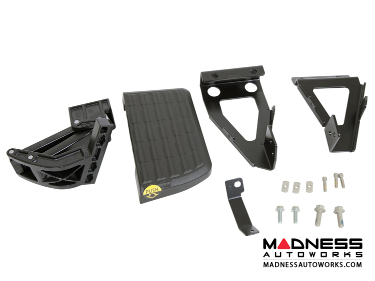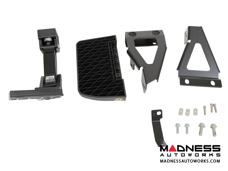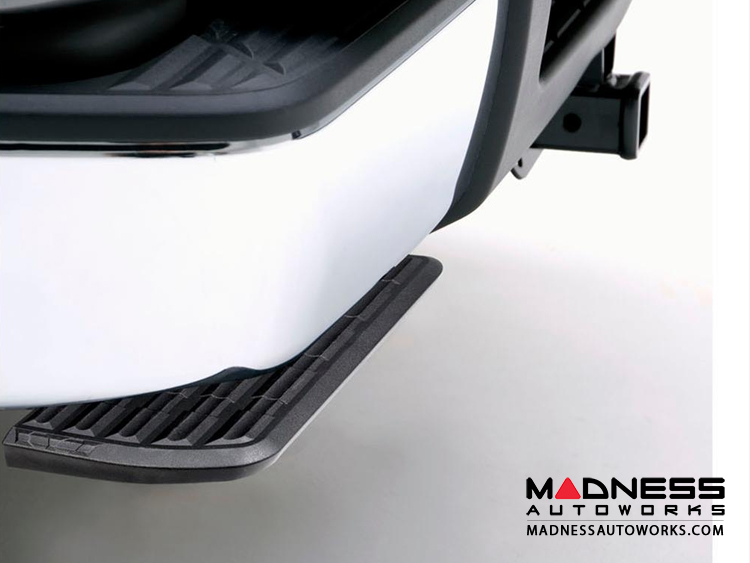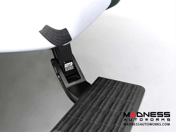 AMP Research BedStep bumper steps step up with American-made quality! These steps retract as easily and quietly as the extend down. Made from high strength aluminum alloys and precision stainless steel pivot pins, they can support up to 300 lbs. They securely mount to your truck frame under the bumper so you can use them with an open tailgate or when towing. They are maintenance-free with self-lubricating bushings and feature a military-spec, corrosion-resistant, anodized and Teflon® coated finish for great all-weather performance. Although Telfon coated, the BedSteps are lined with non-slip composite step pads that are large enough for two large boots!