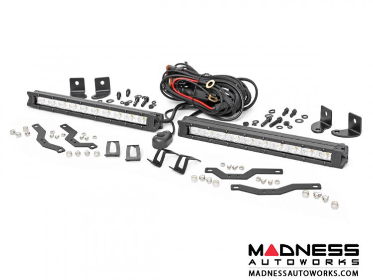 This sleek recessed LED kit fits into the two slots in the factory grille, providing the perfect location for forward-facing LED power. Rough Country’s 10in LED Grille Kit fits in so well it looks like a factory upgrade!