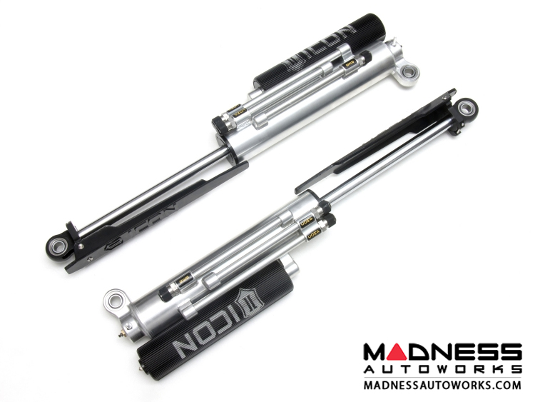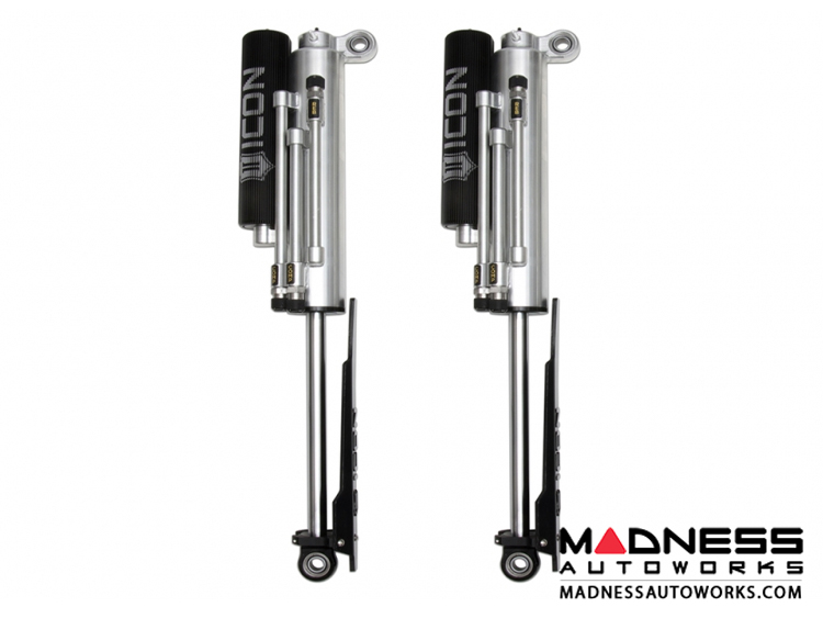 The rear of the updated Ford Raptor was a highlight for ICON engineers, as new changes proved to be for the better. One significant change was that the shock mounting layout went from a parallel style setup to an offset design. While this is great for controlling axle wrap, it required a thorough reevaluation of the way ICON shocks would need to function to make the most of the refreshed rear end. In the R&D process it was found that Gen 2 had more available wheel travel than the original Raptor, and by way of an offset upper eyelet ICON engineers laid out a 3.0 Series bypass shock that maximized travel while utilizing the factory shock mounts. To control the rear end in specific ranges of travel, these shocks feature 3 unique bypass zones – 2 on the compression stroke and one rebound. Unlike other shocks that have a loud bypass “click” when functioning, ICON bypass valves feature damped valve stops for quiet and precise operation. Easy-to-adjust knobs allow for quick changes to shock tuning without the need for tools, enabling the user to dial in their ride with minimal downtime. When in use on and off-road, ICON’s patented Anti-Wobble Link stabilizes the shocks to prevent rotation and possible collision. Additionally, urethane shin guards protect the shock shafts and rod ends under grueling off-road conditions.