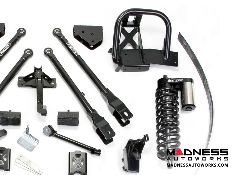 Ford F-250 8" 4 Link ADD-A-Leaf System w/ Dirt Logic 4.0 SS Coilovers by Fabtech (2011 - 2016) 4WD w/ Factory Overload