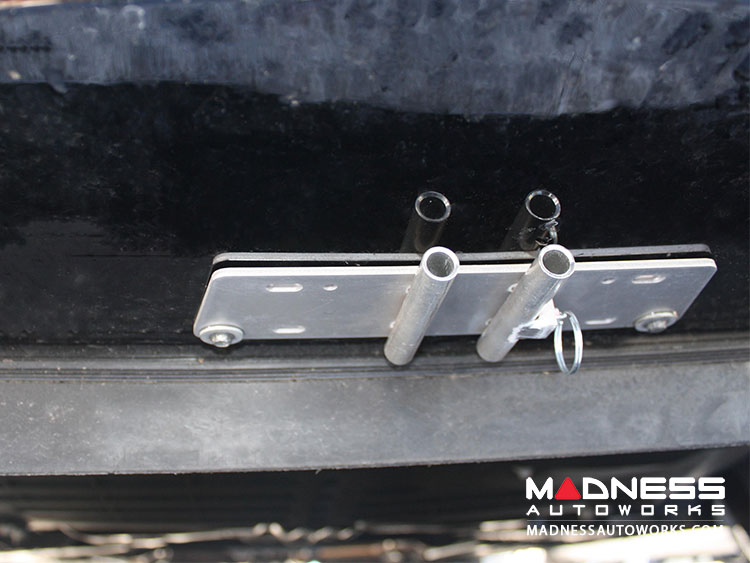 The STO N SHO is a two piece detachable front license plate mounting system consisting of a front license plate holder and a base mounting plate that allows for the easy removal of the front license plate when desired and the quick replacement of the front license plate when needed. When the front license plate holder is removed the remaining base plate is virtually undetectable. The STO N SHO allows you to comply with state law while maintaining the beauty of your Ford Mustang Roush.