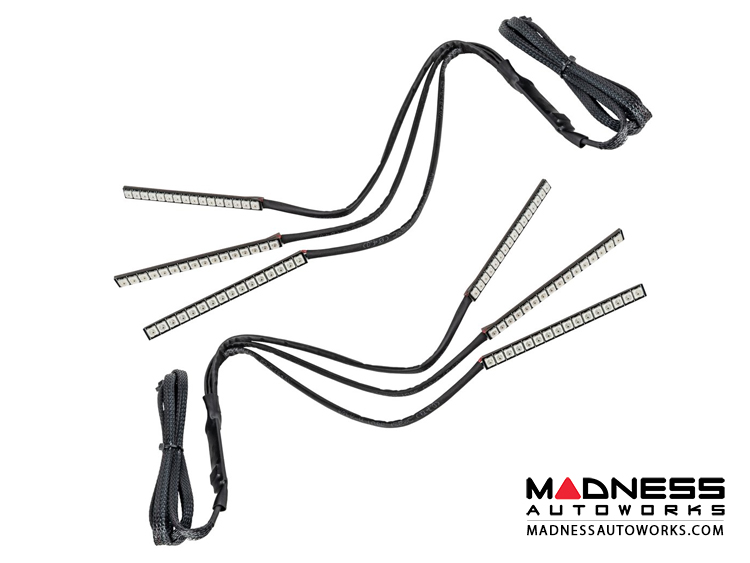 Conveniently controlled through a free smartphone App, the system features over 200 pre-programmed moving patterns as well as static color control and white mode for normal street driving.