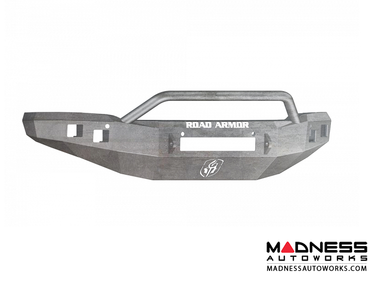Highly Durable Steel Construction. Designed to deliver excellent front-end protection, this front bumper from Road Armor has been precision-built using highly durable, 3/16-inch steel. It has been brake formed and fully welded for precise fit and maximum strength. Please note that this bumper comes with a bare finish, so you can customize it according to the style that suits you.