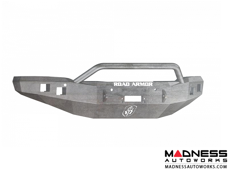 Road Armor Stealth pre-runner front bumpers are designed to fit your specific vehicle. Get yours with or without a winch mount. If you decide on the winch mount option, you'll be able to mount up to a 12,000 pound winch. If you go with the non-winch bumper you'll be able to mount a 20" light bar in the center. These bumpers come with either square or round light cutouts.