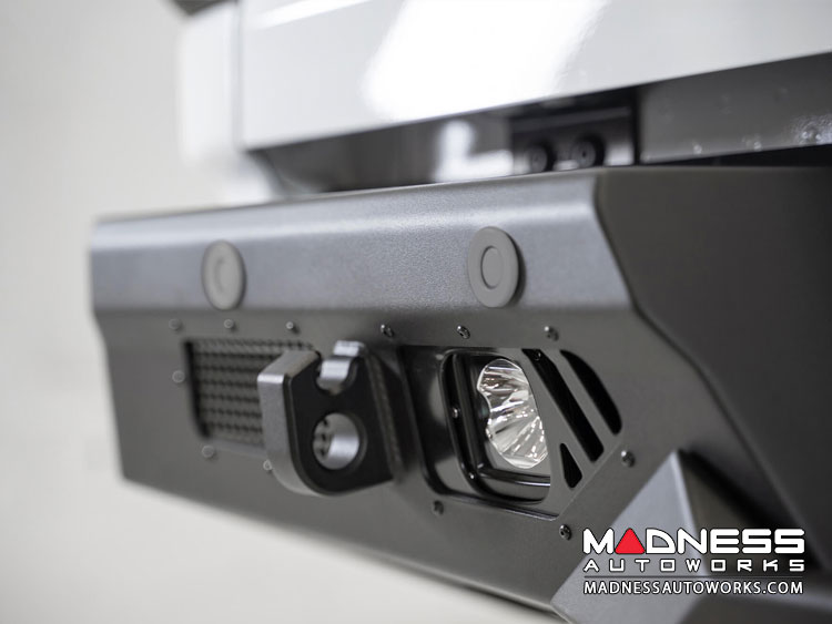 Lighting options include two rear facing cube lights mounts. All factory amenities, such as blind spot monitors and parking sensors, are retained. As always, this product is fully bolt-on and made in America.