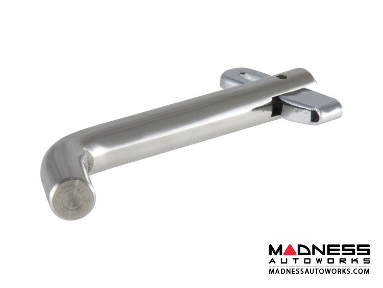 This particular 5/8" hitch pin features a stainless finish and comes with a swivel-type retainer. Instead of using a detachable clip as a retainer, the swivel pin features a metal tab mounted on a hinge on the end of the pin. When the pin is inserted into the receiver tube, the tab can be flipped sideways to keep the pin in place, and when you want to remove it, the tab can be rotated again to allow the pin to easily slide out. Operation is quick and easy, and there is no risk of losing the retainer clip.
