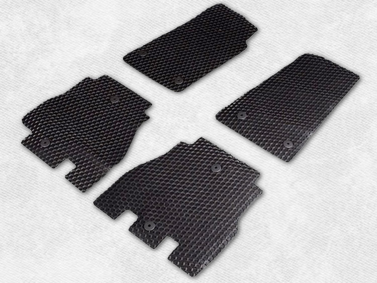 Molded from a space-age rubber composite, these Floor Mats are both flexible and durable. This unique material means HEXOMATS car mats won't fade, crack or otherwise deteriorate. They're custom-contoured to the shape of your floor pan for maximum coverage in a low-profile design-no clumsy tall outer rim.