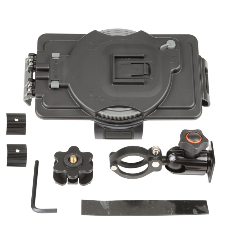 This universal phone mount kit is tailored to accommodate the needs of modern drivers, ensuring your smartphone or tablet is securely fastened for quick and easy access. No more fumbling around or distracted driving; maintain focus on the road while your device remains within reach. The kit seamlessly integrates with the Rugged Ridge Gear-Vise Dash Bar (13551.36 in 18-20 Wrangler JL / Gladiator JT models), making it versatile for various installation setups.