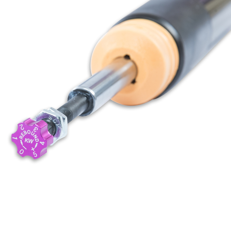 KW V2 INOX-LINE coilovers are the perfect solution for drivers who want more than just outstanding looks and adjustable ride height. In addition to stainless steel coilover struts, and corrosion-resistant components built for long term durability, KW V2 coilovers utilize TVR-A (Twin Valve Rebound - Adjustable) technology that allow Adjustment of the rebound damping characteristics with 16 clicks so you can fine tune the ride comfort or performance to your satisfaction. As with all KW coilovers our engineers develop vehicle specific damper settings that undergo comprehensive testing on the Nurburgring Nordschleife and in our KW 7-post Driving Dynamic Test Center. With a KW coilover kit the driving experience is more dynamic and direct. With the rebound adjustability you have a more direct influence on the handling or comfort of the car. With 16 precise clicks you can adjust the KW dampers (more firm or more comfortable) without affecting the compression damping fine-tuned by our engineers. The two-stage, patented TVR-A (Twin Valve Rebound - Adjustable) technology enables a small volume of oil flow through an adjustable, conically shaped, low-speed bypass during low damper speeds, while at high damper speeds, the main rebound stage valve opens allowing a larger volume of oil to flow. This provides a big improvement in terms of ride comfort without influencing the high-speed range. There are 16 precise clicks availabl e for individual settings, so you can choose between more comfort or more body control. With KW V2 coilovers you can achieve maximum lowering within an approved lowering range that ensures a proper functioning suspension and adequate travel after your car is lowered. Even after years of use you can easily adjust the ride height thanks to the dirt resistant trapezoid thread and composite adjustment collar.. KW V2 INOX-LINE coilovers are the perfect solution for drivers who want more than just outstanding looks and adjustable ride height. In addition to stainless steel coilover struts, and corrosion-resistant components built for long term durability, KW V2 coilovers utilize TVR-A (Twin Valve Rebound - Adjustable) technology that allow Adjustment of the rebound damping characteristics with 16 clicks so you can fine tune the ride comfort or performance to your satisfaction. As with all KW coilovers our engineers develop vehicle specific damper settings that undergo comprehensive testing on the Nurburgring Nordschleife and in our KW 7-post Driving Dynamic Test Center. With a KW coilover kit the driving experience is more dynamic and direct. With the rebound adjustability you have a more direct influence on the handling or comfort of the car. With 16 precise clicks you can adjust the KW dampers (more firm or more comfortable) without affecting the compression damping fine-tuned by our engineers. The two-stage, patented TVR-A (Twin Valve Rebound - Adjustable) technology enables a small volume of oil flow through an adjustable, conically shaped, low-speed bypass during low damper speeds, while at high damper speeds, the main rebound stage valve opens allowing a larger volume of oil to flow. This provides a big improvement in terms of ride comfort without influencing the high-speed range. There are 16 precise clicks available for individual settings, so you can choose between more comfort or more body control. With KW V2 coilovers you can achieve maximum lowering within an approved lowering range that ensures a proper functioning suspension and adequate travel after your car is lowered. Even after years of use you can easily adjust the ride height thanks to the dirt resistant trapezoid thread and composite adjustment collar.. For over 20 years, KW automotive has been the market leader and driving innovation as a manufacturer of individual suspension solutions for the road and in all types of motorsports. No matter where in the world, gearheads, automobile manufacturers and reputable tuners rely on our KW coilovers "Made in Germany". Every KW coilover kit undergoes extensive stress testing before production and is developed and manufactured exclusively in our company headquarters in Fichtenberg, a small in town in Germany, to meet the high standards of our KW quality management. For us as a German manufacturer, it goes without saying that our KW coilover kits will exceed the original equipment manufacturer quality and offer useful and innovative solutions. With an application list comprising more than 4,600 options KW guarantees an outstanding selection backed by our Limited Lifetime Warranty.. TVR-A (Twin Valve Rebound - Adjustable) technology - allows oil to flow passed an adjustable, conical low-speed bypass during slow damper speeds, while at higher speed, the main rebound stage valve opens for maximum fluid displacement.. Elastomer Bump stop with integrated dust protection system prevents water and dirt particles reaching the piston rod and seals. The highly resilient bump stops act as dynamic load limiters while maintaining ride quality and durability.. Adjustable rebound damping allows you to influence the ride characteristics. Paired with vehicle specific spring rates precisely tuned by our engineers, V2 coilovers allow you to choose between more comfort or increased sportiness.. For sporty drivers who want more than just outstanding looks and lowering within the tested Adjustment -angle, the KW V2 "INOX-LINE" coilovers are the perfect suspension featuring TVR-A adjustable rebound damping technology.. Composite spring perch made from wear-resistant, friction-optimized polyamide composite encompassing a stainless-steel insert. The polyamide composite prevents oxidation while the stainless-steel insert maximizes strength.. Inox-Line Stainless Steel - Truly Permanent Corrosion Resistance. Inox-Line coatings will not wear off while adjusting the suspension making KW coilover struts 100 percent corrosion resistant with an unlimited lifespan.. Seamless Ride Height Adjustment - the co