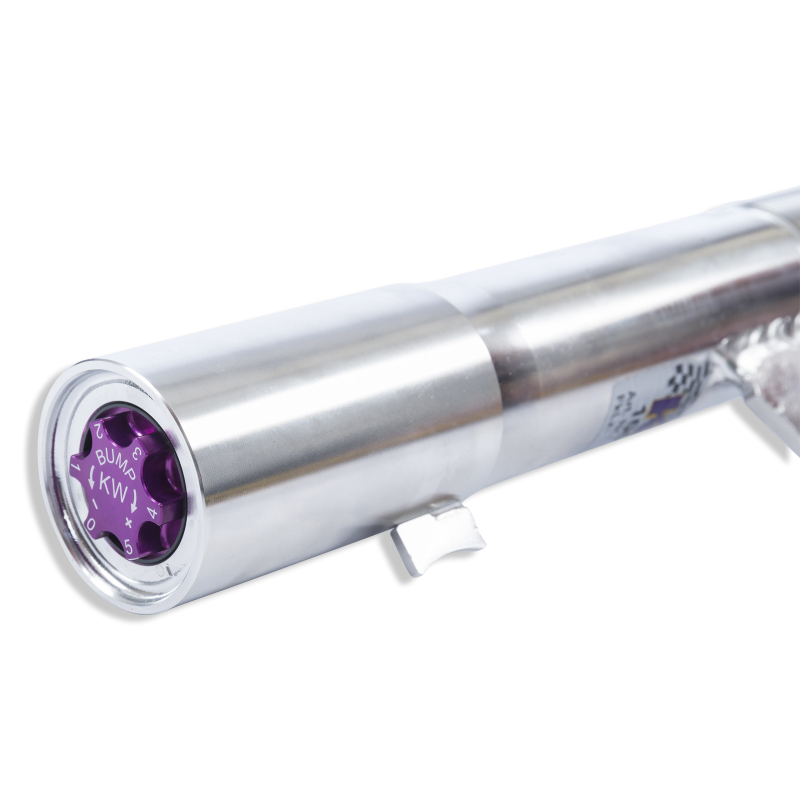 Cutting-edge motorsports technology for more performance on the road. Like every suspension product developed by KW automotive, the suspension manufacturer, and manufactured in Germany, the KW V3 Coilover suspension kit also provides a significant plus in safety reserves in road traffic. Thanks to the chassis with its high-quality dampers, springs, and elastomer spring elements, pitching and rolling movements during load changes such as evasive maneuvers, cornering, acceleration, and braking are significantly reduced. The braking distances are also shortened. Thanks to improved support and feedback, drivers not only feel safer but driving in everyday life becomes even safer. With compression and rebound stage damping, that can be set separately and independently of each other, the damper setup can be customized to your personal driving preferences or vehicle changes such as weight, tire characteristics, or altered vehicle rigidity. True performance optimization is only possible with this unique, patented system. For example, this allows the compression damping force to be increased and get more grip from the tires, to improve cornering behavior and reduce squat without simultaneously altering the rebound stage damping which is optimally matched to the spring rate, a scenario which results in reduced grip and the associated loss of performance. The KW V3 coilover kit is the ideal tool for performance-oriented drivers and experienced tuning enthusiasts who place a strong emphasis on the overall performance of their suspension. The Variant 3 features patented TVR-A and TVC-A technology that provides separately adjustable rebound and compression damping. The extensive adjustment range of the independently configurable rebound and compression make it easy to directly influence the steering behavior, directional stability, grip and handling characteristics for confident and repeatable results at the limit of driving dynamics.. For over 20 years, KW automotive has been the market leader and driving innovation as a manufacturer of individual suspension solutions for the road and in all types of motorsports. No matter where in the world, gearheads, automobile manufacturers and reputable tuners rely on our KW coilovers "Made in Germany". Every KW coilover kit undergoes extensive stress testing before production and is developed and manufactured exclusively in our company headquarters in Fichtenberg, a small in town in Germany, to meet the high standards of our KW quality management. For us as a German manufacturer, it goes without saying that our KW coilover kits will exceed the original equipment manufacturer quality and offer useful and innovative solutions. With an application list comprising more than 4,600 options KW guarantees an outstanding selection backed by our Limited Lifetime Warranty.. TVR-A (Twin Valve Rebound - Adjustable) technology - allows oil to flow passed an adjustable, conical low-speed bypass during slow damper speeds, while at higher speed, the main rebound stage valve opens for maximum fluid displacement.. Elastomer Bump stop with integrated dust protection system prevents water and dirt particles reaching the piston rod and seals. The highly resilient bump stops act as dynamic load limiters while maintaining ride quality and durability.. Unparalleled street performance bred from motorsports heritage, the patented KW-valve technology -or the separate Adjustment -f rebound and compression damping, allows you to individually adapt the vehicle-specific base setup.. TVC-A (Twin Valve Compression - Adjustable) technology - patented compression valve allows fine tuning of low speed. During sudden high piston speeds, the low speed needle and main valve blow-off feature open to maximize flow.. Composite spring perch made from wear-resistant, friction-optimized polyamide composite encompassing a stainless-steel insert. The polyamide composite prevents oxidation while the stainless-steel insert maximizes strength.. Inox-Line Stainless Steel - Truly Permanent Corrosion Resistance. Inox-Line coatings will not wear off while adjusting the suspension making KW coilover struts 100 percent corrosion resistant with an unlimited lifespan.. Road legal motorsports technology featuring independent rebound and compression adjustability and application specific spring and damper tuning resulting in unparalleled street performance.. KW suspensions V3 coilovers are hand built by our expert team and given a uniquely individual serial number at our headquarters in Fichtenberg, Germany.. audi coilovers, lowering coilover kit, coil springs, performance suspension, V3 coilovers, coilover kit adjustable, rebound adjustable, 2 way clubsport. Each damper is dyno tested to ensure accuracy and preset to our recommended shock settings before being released for delivery.. Height Adjustable Coilovers with Independent Compression and Rebound Technology. KW Coilover Kit V3 17-18 Audi RS3 2.5L 8V w/o Electronic Dampers. 2017-2020 Audi RS3 (8V); without electronic dampers. Coilover Adjustable Spring Lowering Kit. KW COILOVER KIT V3 - 352100AK. KW Coilover Kit V3. Coilover Kit