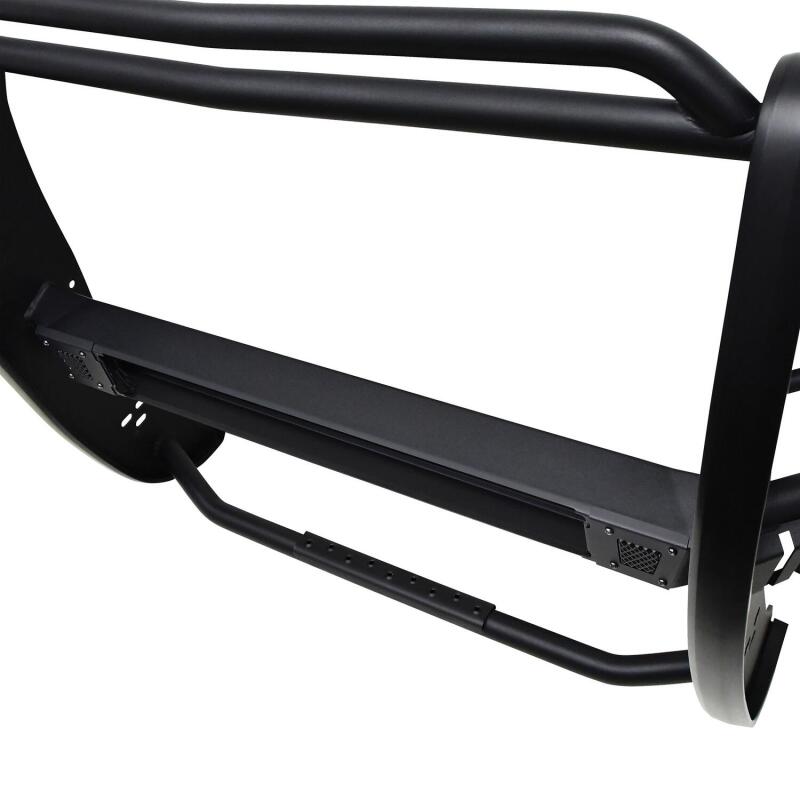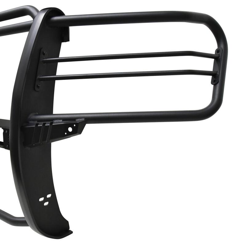 Westins Sportsman X Grille Guard effectively combines aggressive styling with heavy duty front end protection. Engineered to provide both great looks and performance, Sportsman Xs unique design compliments todays larger grille designs, and is available to fit most full and mid size truck applications. Sportsman X has an optional detachable mesh panel (sold separately) which is specifically designed to fit the opening in the center section of Sportsman X Grille Guard, or can be removed to accommodate the flush mounted 26in. dual row LED light bar (sold separately). A smaller removable mesh panel designed for the factory sensor location opening is included as standard with Sportsman X. For specific Chevy and Dodge/RAM applications a Sportsman X Sensor Kit (sold separately) is available. An exterior step plate is located on the 1-5/8in. bottom tube to provide easy access to the engine compartment. Built with heavy duty 2-1/4in. upright rubber strips and 1- 5/8in. outer tubes, Sportsman X Grille Guard is designed to provide protection and style for years to come.. Westin 19-21 Chevy 1500 Sportsman X Grille Guard - Textured Black (Excl. 2019 Silverado LD). Sensor relocator kit for specific Chevy and Dodge/RAM applications - sold separately. Headlight area 3/4" crossbars provide strength to grille guard wings. Exterior Step Plate Provides Easy Access To Engine Compartment. Unique Plate Design Provides Maximum Support To Outer Wings. Accepts optional DRL LED light bar kit - sold separately. Aggressive Styling Compliments Todays Larger Grilles. Accepts 26 in. Drl Led Light Kit- Sold Separately. Removable Mesh Panel Accommodates Factory Sensors. Die Stamped Steel Step Area For Maximum Traction. Heavy Duty 2 1/4 in. Wide Upright Rubber Strips. Removable Center Mesh Panel - Sold Separately. Heavy duty 2 1/4" wide upright rubber strips. Pre-Drilled Provisions For Factory Sensors. Pre drilled provisions for factory sensors. Sportsman X Grille Guard; Textured Black;. Heavy Duty 1 5/8 in. Outer Steel Tubing. Heavy duty 1 5/8" outer steel tubing. Provides Added Front End Protection. Sportsman X Grille Guard. Mount Kit Included. Textured Black. Grille Guard