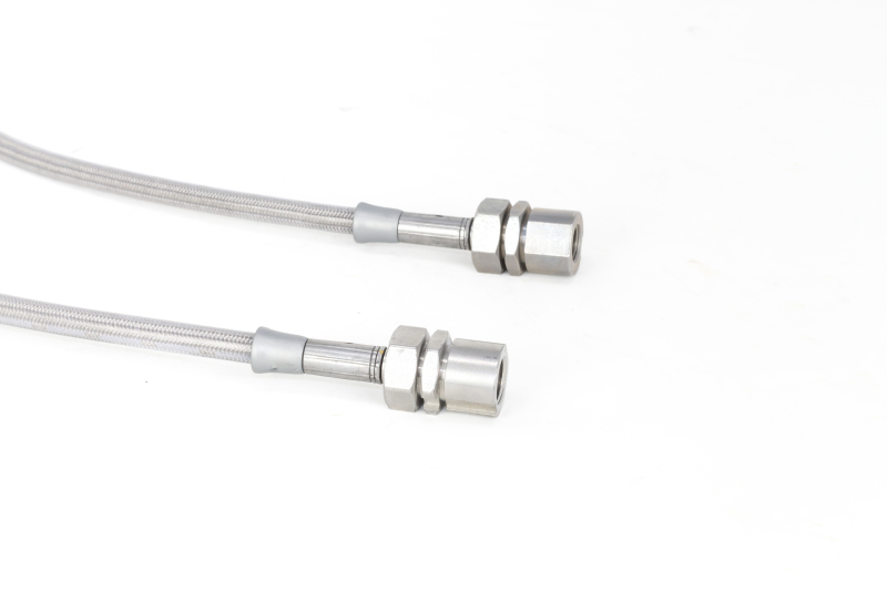 Goodridge stainless steel brake or clutch hose kits are available to suit all models of car, whatever the make. Kits feature the finest quality hose, consisting of a PTFE inner with a stainless steel outerbraid. This eliminates the spongy pedal feel under arduous conditions, giving greater braking efficiency or clutch operation as well as providing superior resistance to abrasion and corrosion. These kits, therefore, not only provide the reliability and safety demanded but offer brilliant good looks that improve the appearance of any installation. Most brake and clutch lines car kit specifications are on file but any additional information is always appreciated. Goodridge G-Stop Brake Line Kits are constructed from the finest quality hose, consisting of a PTFE inner and stainless steel overbraid. Replacing OE brake lines with -03 PTFE hose improves brake feel over factory lines, eliminates sponginess, and provides shorter stopping distances and consistent braking in performance applications.. G-STOP SS Braided Brake Line Kit; Incl. 2 Front Lines/Adapters/Banjo Bolts/Washers/Line Locators;. Goodridge 99-04 Ford Mustang Cobra Fronts Only Brake Lines. Terrific Performance Enhancement And Safety Improvement. More Consistent Pedal Response Under Heavy Braking. Reduced Pedal Chatter When Use With ABS Systems. 9-Point Quality Assurance Testing Process. Conform To All Federal Requirements. Eliminates Sponginess Under Braking. G-STOP SS Braided Brake Line Kit. Abrasion and Corossion Resistent. Increases Braking Efficiency. Reduces Stopping Distance. D.O.T. Compliant. 90 Day Warranty. Brake Hose Kit