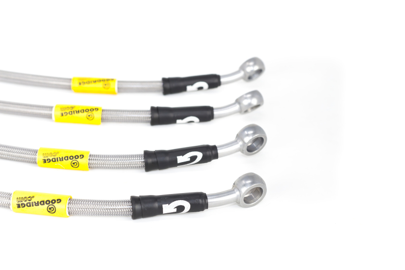 Goodridge stainless steel brake or clutch hose kits are available to suit all models of car, whatever the make. Kits feature the finest quality hose, consisting of a PTFE inner with a stainless steel outerbraid. This eliminates the spongy pedal feel under arduous conditions, giving greater braking efficiency or clutch operation as well as providing superior resistance to abrasion and corrosion. These kits, therefore, not only provide the reliability and safety demanded but offer brilliant good looks that improve the appearance of any installation. Most brake and clutch lines car kit specifications are on file but any additional information is always appreciated. Goodridge G-Stop Brake Line Kits are constructed from the finest quality hose, consisting of a PTFE inner and stainless steel overbraid. Replacing OE brake lines with -03 PTFE hose improves brake feel over factory lines, eliminates sponginess, and provides shorter stopping distances and consistent braking in performance applications.. G-STOP SS Braided Brake Line Kit; Incl. 2 Front Lines/2 Rear Lines/Adapters/Banjo Bolts/Washers/Line Locators;. Terrific Performance Enhancement And Safety Improvement. Goodridge 97-04 Chevrolet Corvette Z06 Brake Line Kit. More Consistent Pedal Response Under Heavy Braking. Reduced Pedal Chatter When Use With ABS Systems. 9-Point Quality Assurance Testing Process. Conform To All Federal Requirements. Eliminates Sponginess Under Braking. G-STOP SS Braided Brake Line Kit. Abrasion and Corossion Resistent. Increases Braking Efficiency. Reduces Stopping Distance. D.O.T. Compliant. 90 Day Warranty. Brake Hose Kit