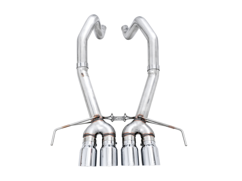 Raw, rowdy, and lightweight. The AWE Track Edition Axle Back is the perfect dose of steel for drivers looking for the loudest of the lot. Retaining the 3” diameter T304L stainless steel construction, the Track Edition Axle Back mirrors all of the precision engineering and perfect fitment found in its Touring Edition counterpart, minus the 180 Technology®. Instead, the Track Edition features straight pipe sections to deliver the thunder. The C7 Track Edition Exhaust is not for the faint of heart, and for this reason, Track Edition Exhausts cannot be returned based on sound preference. Choose your weapon wisely. If you're running the Track Edition and want to tone it down, we made it easy to convert catbacks from a Track Edition to a Touring Edition with our Conversion Kits. Easy! AWE includes our AFM Valve Simulators (required for the Corvette Stingray / Z51 Auto / Z51 Manual (2014-2016) / Grand Sport Auto) in every kit. The AFM Valve Simulators provide a worry-free solution for removing AFM valves from the exhaust route without causing a check engine light. They flaunt CNC laser-cut T304 stainless steel construction, and are a direct bolt-on to factory AFM valve motors. Simply remove the AFM valve motors from the factory exhaust, bolt them onto the AWE AFM Valve Simulator, and secure them safely to the vehicle. Once installed, the AFM valve motors will retain their factory operation, and keep your car’s ECU happy. Vehicles without AFM valves do not need to use the AFM Valve Simulators. All tip options are 4.5” slash-cut, and include the AWE logo and double-walling to ensure a mirror finish even under hard usage. All tips are individually adjustable, allowing depth into the bumper to be set according to personal taste.. AWE Track Edition Axleback Exhaust for C7 Corvette Stingray / Z51 / Grand Sport / Z06 / ZR1 -- Chrome Silver Tips (includes AWE AFM valve simulators). Peak gains of 18 hp and 16 lb-ft of torque, and max gains of 22 hp @ 6400 rpm and 20 lb-ft of torque @ 4000 rpm, at the wheels. AWE Tuning 14-19 Chevy Corvette C7 Z06/ZR1 (w/AFM) Track Edition Axle-Back Exhaust w/Chrome Tips. Handcrafted from 3 inch U.S.-sourced CNC mandrel-bent .065 inch wall T304L stainless steel. Included AWE AFM Valve Simulators allow AFM-equipped cars to run full Axle Back exhausts. Less is more: clean, non-baffled, straight-through design maximizes performance. AWE Track Edition Axle-back for C7 Stingray / Z51 / Grand Sport / Z06 / ZR1. Proudly engineered, designed, and manufactured in-house, in the USA. 4.5 inch double-walled tips in Chrome Silver or Diamond Black. Featuring the AWE Lifetime Exhaust Warranty. Significant weight savings over stock. No Check Engine Light -- Guaranteed. Perfect Fitment -- Guaranteed. Track Exhaust