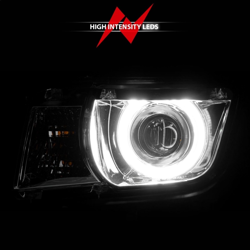 The Chevrolet Camaro Projector Headlights by ANZO - Halo Chrome CCFL - Chrome - designed for 2010-2013 models, offer an impressive upgrade in both style and visibility. These meticulously engineered headlights offer a striking appearance with their halo and projector design that stands out on the road.