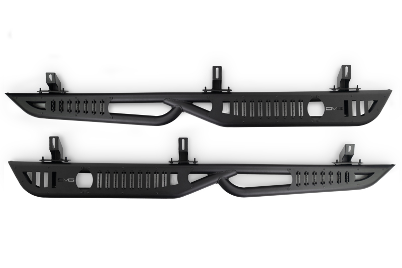 One of the most appealing aspects of the DVE Rock Slider Steps is their innovative tapered design. This feature eliminates the inconvenience of brushing your leg against the steps, making your exit from the vehicle smooth and more graceful. The steps are fortified with surface plates equipped with an anti-slip design, which provides exceptional grip, ensuring your safety even in wet and muddy conditions. These steps are built to last, constructed from high-quality steel tubing that has been powder-coated with a durable micro-texture black finish, offering maximum protection against harsh weather and the rigors of trailblazing.