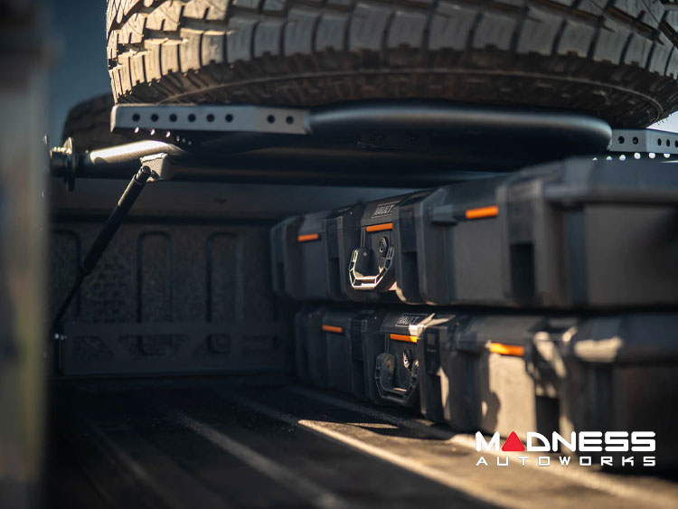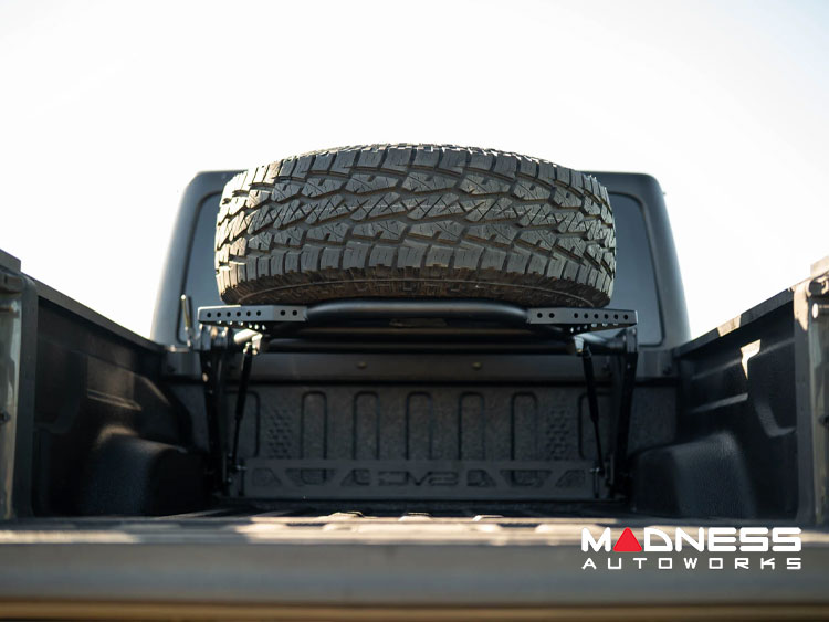 Upgrade your Jeep Gladiator's functionality with the DV8 Adjustable In-Bed Tire Carrier.