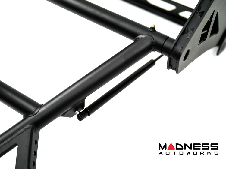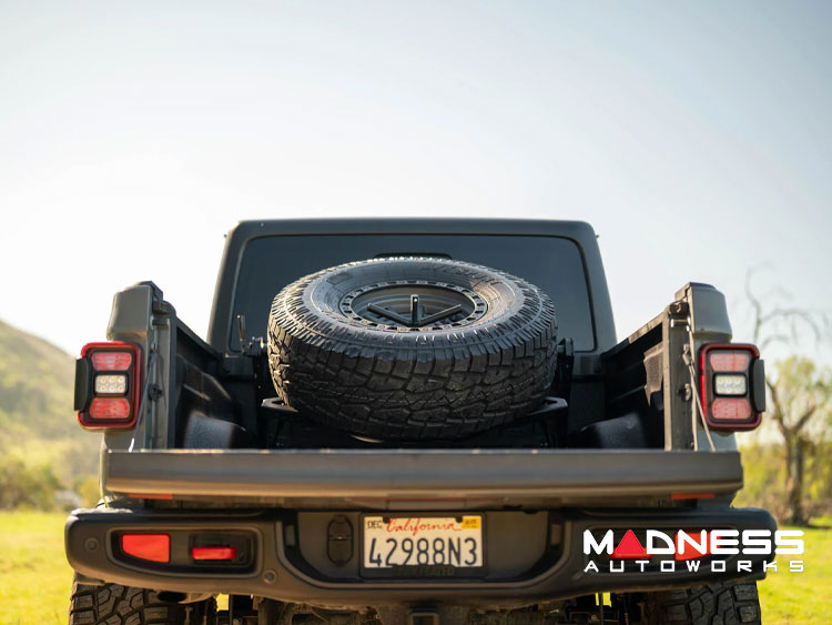 This tire carrier ensures you are always prepared for your next adventure, minimizing the hassle of traditional rear-mounted spare carriers and offering a streamlined profile for your Gladiator. Whether you're exploring rocky trails or embarking on a lengthy road trip, this in-bed tire carrier promises convenience without compromising on style and reliability.