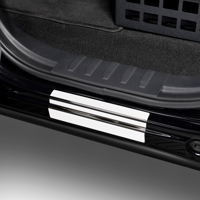Ford F-150 Door Sills - Front + Rear - Putco - Polished T-304 Stainless Steel, Laser-Etched Logo (4pcs) - Polished Stainless Steel - `15-`20