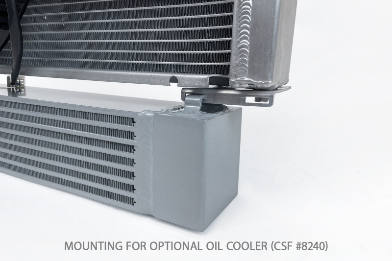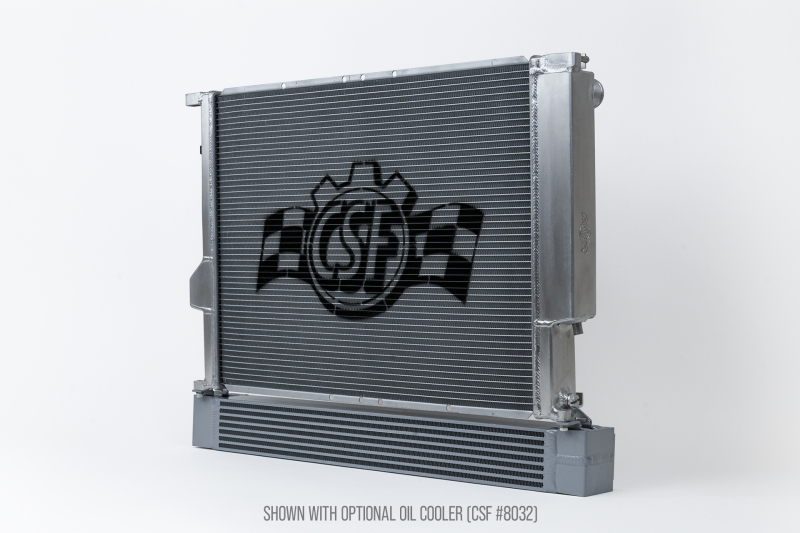 BMW 3 Series Radiator - CSF - All-Aluminum, 2-Row 42mm Core (B-Tube), includes oil cooler and 16-inch SPAL fan brackets - Satin - `99-`06