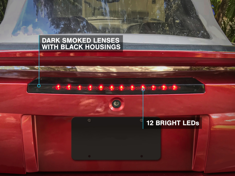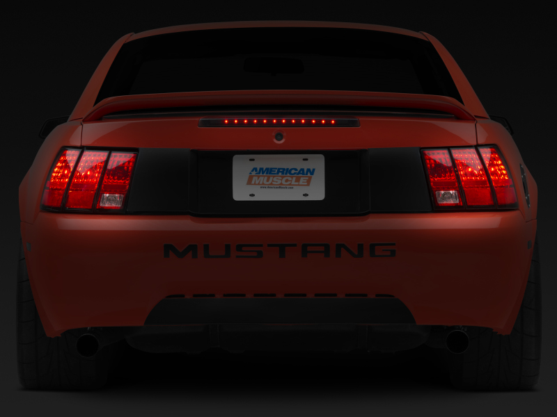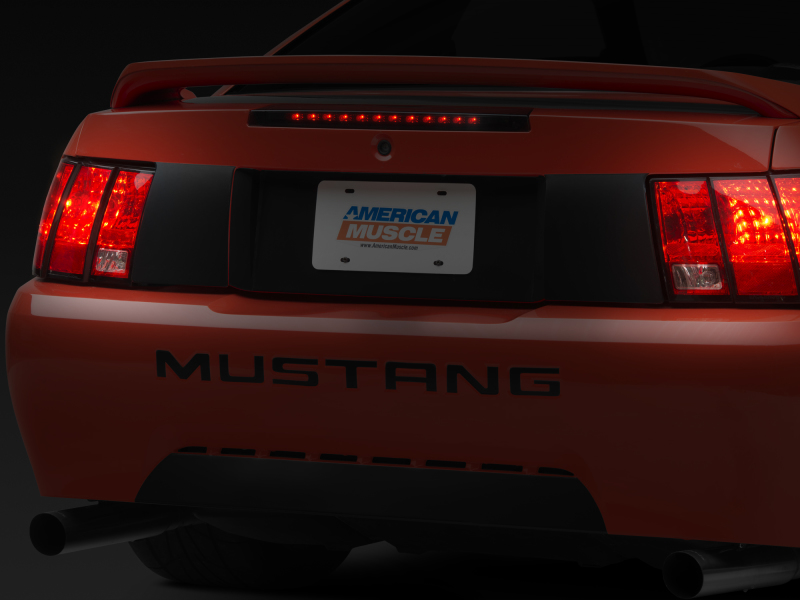 Installing Raxiom's Axial Smoked LED Third Brake Light is a great way to upgrade the appearance and safety of your 1999-2004 Mustang. This Axial Brake Light replaces your New Edge Mustang's weak incandescent stock third brake light bulbs with 12 super bright LEDs. These LEDs will vastly improve your visibility to catch the attention of distracted drivers. Manufactured from OEM grade materials, this Axial LED Third Brake Light is assembled to precise standards for long lasting quality. Featuring a durable black plastic housing with a smoked red lens, this Light employees a single row of 12 LEDs. These super bright LEDs have an average life span of 100,000-hours, to last years longer than any conventional incandescent bulbs. Raxiom designed their LED Third Brake Light to be a direct plug and play replacement for your Mustang's original factory housing. There is no cutting or modifications required for a clean straight forward install. Installation can be completed in about 15 minutes with just basic hand tools.. Raxiom 99-04 Ford Mustang Excluding Cobra Axial Series LED Third Brake Light (Smoked). Modern Electronics with Super Bright LED Technology. Raxiom Axial Series LED Third Brake Light. Brighter than OEM for Additional Safety. Not Compatble with 2003-2004 Cobra's. Axial Series LED Third Brake Light. Simple Plug and Play Installation. Smoked Lens with Black Housing. LED Third Brake Light Upgrade. LED Third Brake Light. Brake Light. Smoked. Light