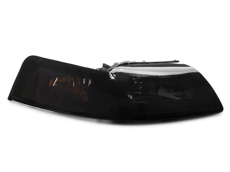 These Axial Smoked Mustang Headlights are the perfect replacement for your old worn out headlights and will have any 1999-2004 mustang looking as if it just rolled off the showroom floor. And the one piece design fits perfectly into the stock location for a clean sleek look. These are the same style lights that were featured on the 2002-2004 Mustangs and 2001 Cobra from the factory. Now you can improve your night visibility just by replacing your old weathered and yellowed stock headlights with a brand new set of crystal clear headlights from Raxiom. Equipped with dual element 9007 bulbs for high/low beams this pair of Axial Mustang Headlights are DOT (Department of Transportation) approved for legal street use under compliance # QR1200057.. Raxiom 99-04 Ford Mustang Axial Series OE Style Headlights- Black Housing (Smoked Lens). DOT Approved Under Compliance# QR1200057. Black Housings with Smoked Lenses. OE Style Headlights. Black Housing. Smoked Lens. Headlights. Headlight
