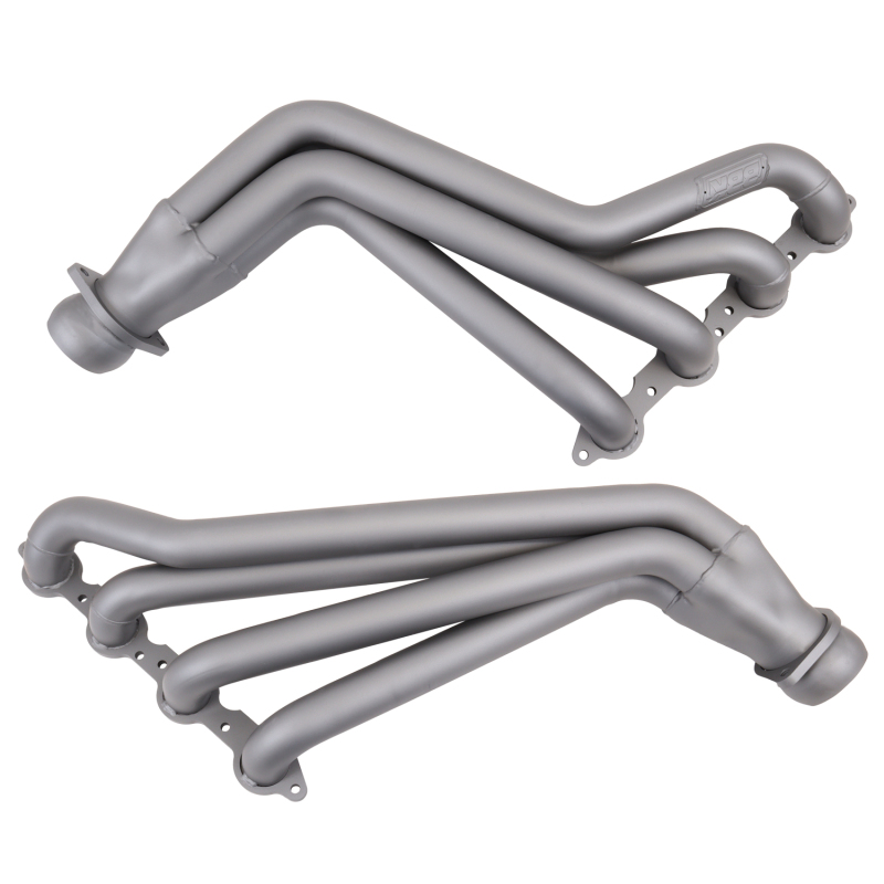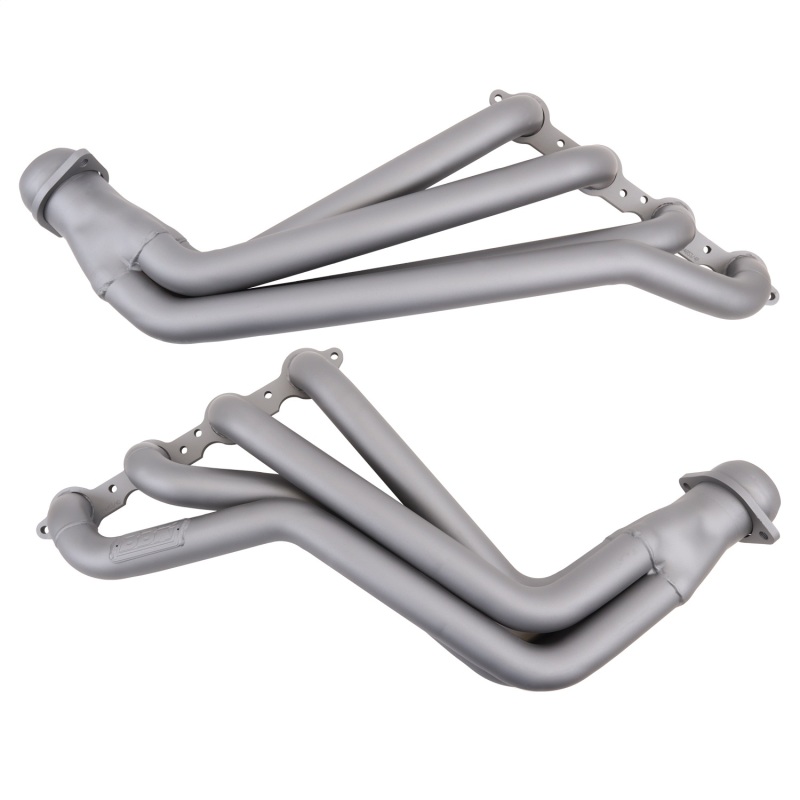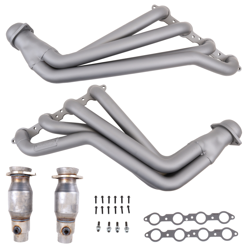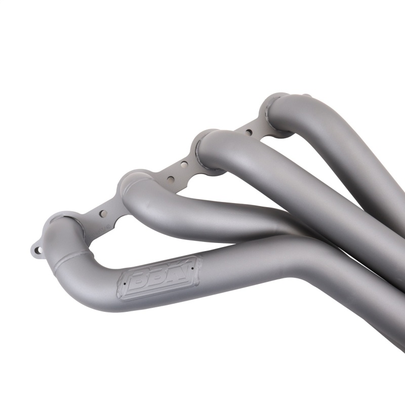 These 1-7/8 BBK Performance full length long tube exhaust headers offer unsurpassed quality and fitment using top quality materials and American craftsmanship. Every long tube exhaust header system is hand built with CNC mandrel bent tubing for unrestrictive exhaust flow and maximum performance, 3/8 in. laser cut header flanges, patented scavenging collector design and gasket less ball and socket connectors for easy installation. Every exhaust header has been designed specifically for your application to get the most horsepower and torque out of the engine. BBK long tube exhaust headers outperform the competition in quality value and performance. All headers are a direct fit bolt on replacement when used with the correct matching mid-pipes which are available with high flow catalytic converters. Our decades of exhaust design and experience make BBK Performance your number one choice for late model American car and truck performance exhaust.. These 1-7/8 BBK Performance full length long tube exhaust headers offer unsurpassed quality and fitment using top quality materials and American craftsmanship. Every long tube exhaust header system is hand built with CNC mandrel bent tubing for unrestrictive exhaust flow and maximum performance, 3/8" laser cut header flanges, patented scavenging collector design and gasket less ball and socket connectors for easy installation. Every exhaust header has been designed specifically for your application to get the most horsepower and torque out of the engine. BBK long tube exhaust headers outperform the competition in quality value and performance. All headers are a direct fit bolt on replacement when used with the correct matching mid-pipes which are available with high flow catalytic converters. Our decades of exhaust design and experience make BBK Performance your number one choice for late model American car and truck performance exhaust.. All BBK Performance parts are backed by a 1-YEAR manufacturer’s warranty from the original date of purchase. An optional extended warranty is also available - giving you an additional 2 or 3 years from original date of purchase. Costs for the extended warranty option can be viewed when the item is added to your cart. The manufacturer’s warranty is based on normal use and installation of each product.. Titanium Ceramic Finish - 1-7/8" Mandrel Bent Primary Tubes for unrestricted exhaust flow and maximum performance. Direct Replacement headers, kit Includes High Flow Catalytic converters. Long Tube Exhaust Header; Titanium Ceramic Finish; CNC Mandrel Bent Tubes; 1.875 in. Tubing; Full Length; Direct Fit Design; Incl. 2 High-Flow Catalytic Converter Pipes;. BBK 2010-15 Camaro Ls3/L99 1-7/8 Full-Length Headers W/ High Flow Cats (Titanium Ceramic). 2010-2015 CAMARO LS3/L99 1-7/8 LONG TUBE EXHAUST HEADERS W/CATS (TITANIUM CERAMIC). 10-15 CAMARO LS3/L99 1-7/8 LONG TUBE HEADERS W/CATS (TITANIUM CERAMIC). THE BBK PERFORMANCE R/D DEPARTMENT DEVEL. Long Tube Exhaust Header. BBK Exhaust Headers. Headers-Long Tube. Made In The USA. Exhaust Headers. Exhaust Header