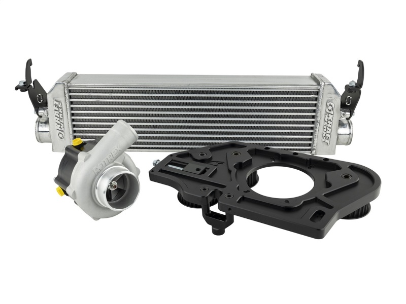 At the core of this supercharger kit is the powerful Rotrex C38-81 supercharger, delivering up to 9psi of boost for enhanced engine performance. Paired with a robust 30mm cogged drive system, the kit ensures reliable, zero-slip power transfer. The addition of redesigned supercharger mounting brackets and a wider drive pulley set results in a configuration that is 57% stronger than previous versions. The KraftWerks KRT Supercharger Kit comes complete with a comprehensive tuning solution from ECUTEK, making it an all-in-one package that features everything you need for a seamless installation. This includes CNC-machined brackets, idler pulley, aluminum intercooler piping, and a recirculating bypass valve, all designed to maximize your car's potential.