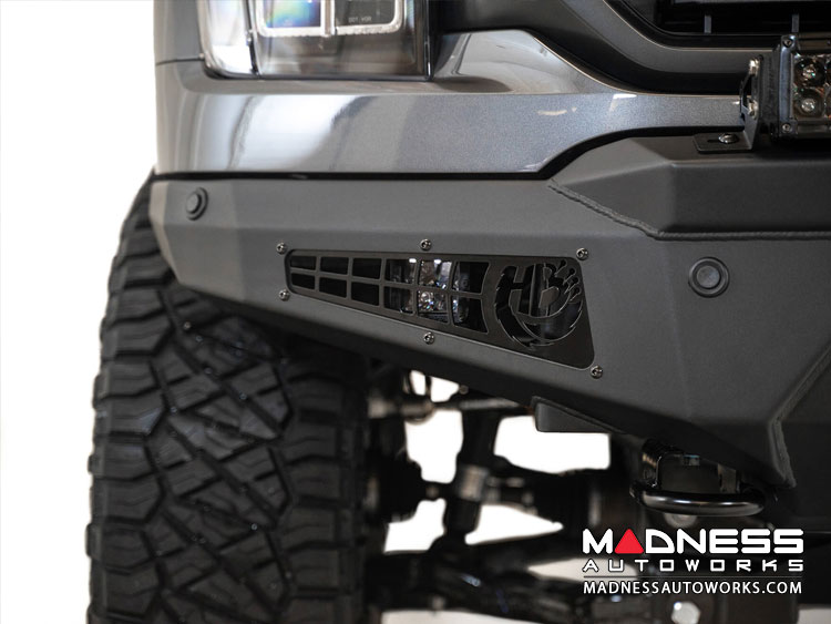 The HoneyBadger comes in hammer black powder coat with satin black panels. OEM amenities, such as parking sensors and tow hooks, are retained. Even though it is an aftermarket front bumper, the HoneyBadger follows the bodylines perfectly, making the front of your Ford F-150 look unique without sacrificing quality. As always this product is fully bolt-on and made in America.