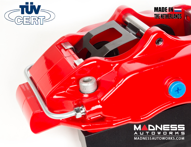 - 4 Piston Forged Aluminum Calipers in a Gloss Red Finish