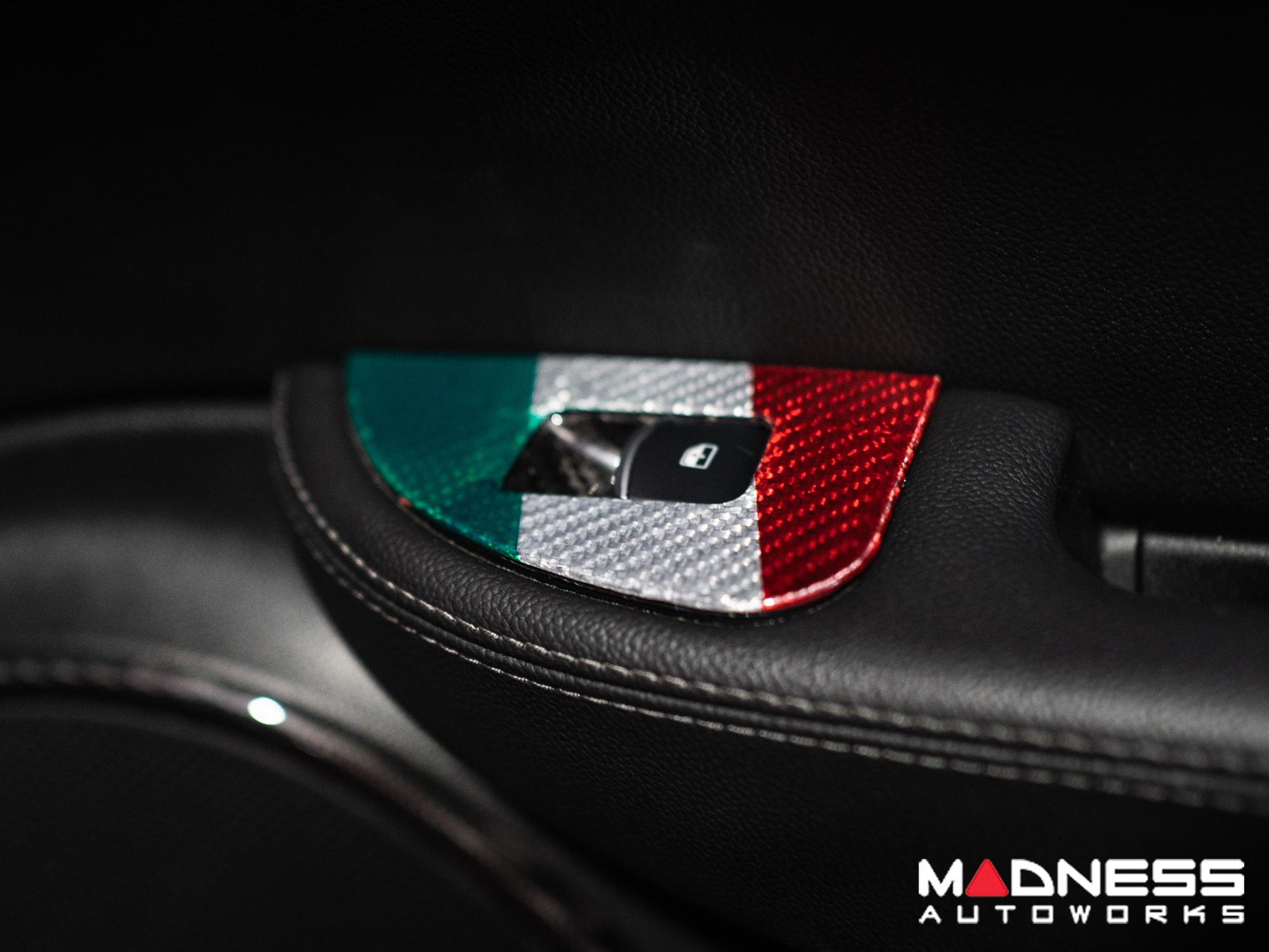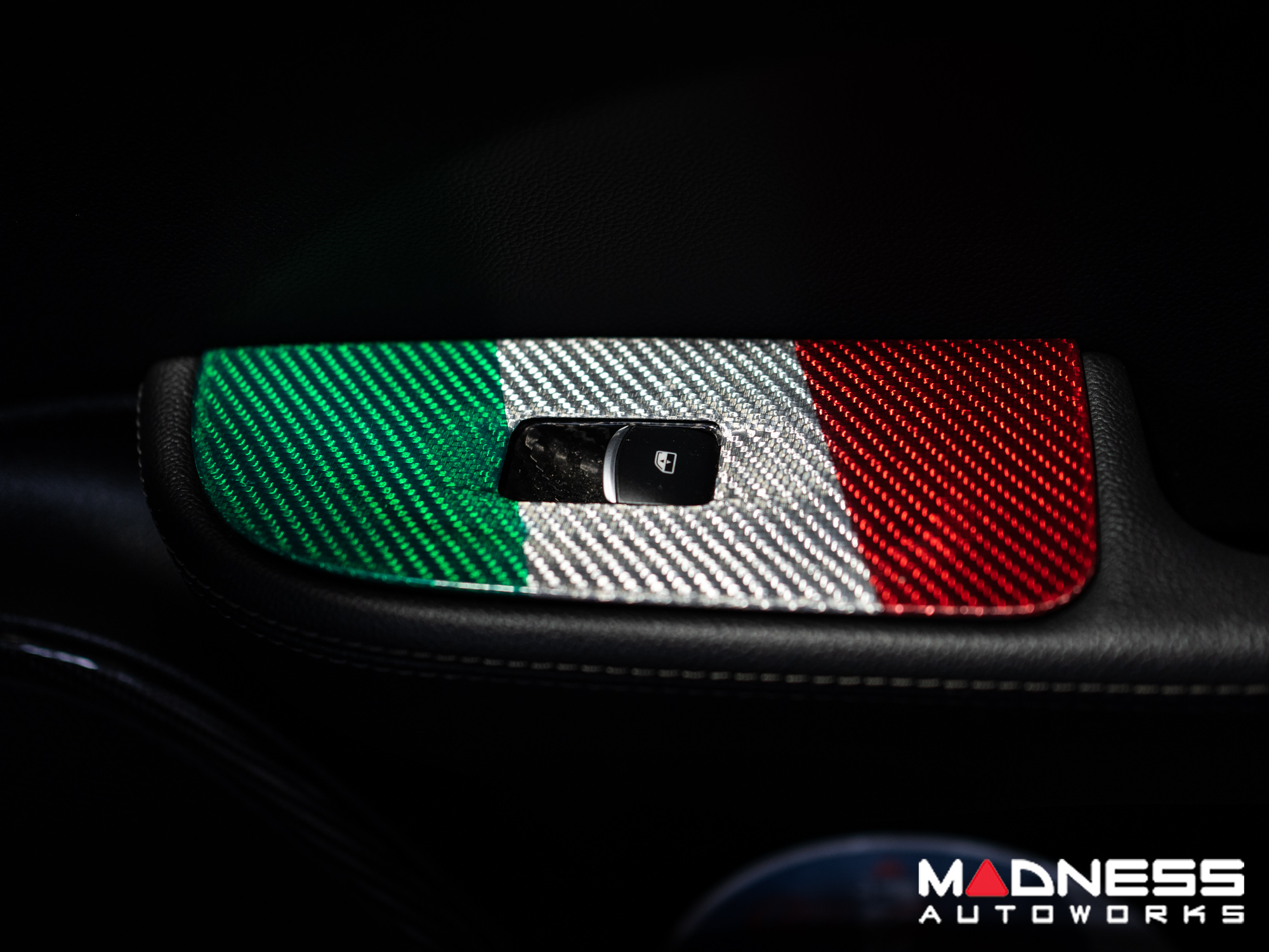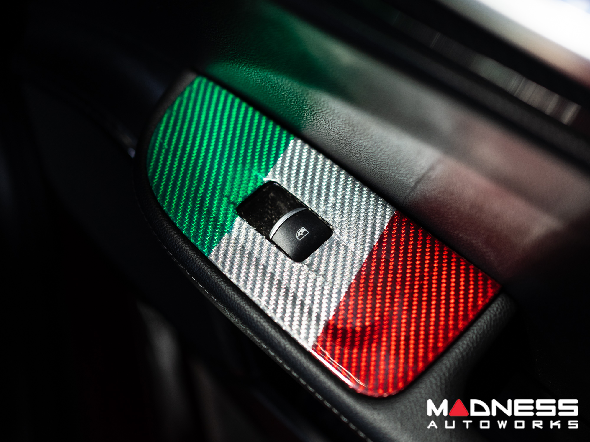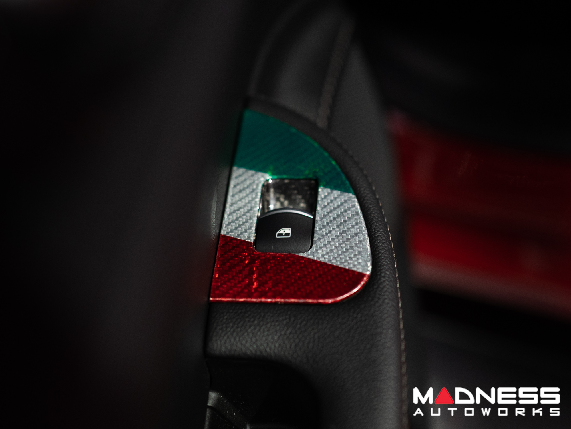 This Genuine Carbon Fiber Door Window Switch Trim Kit is designed to fit over the factory door window switch trim with ease and give them an upgraded look and feel. This version is manufactured in a Custom Italian Theme for that extra detail for all you Italian Fans out there.