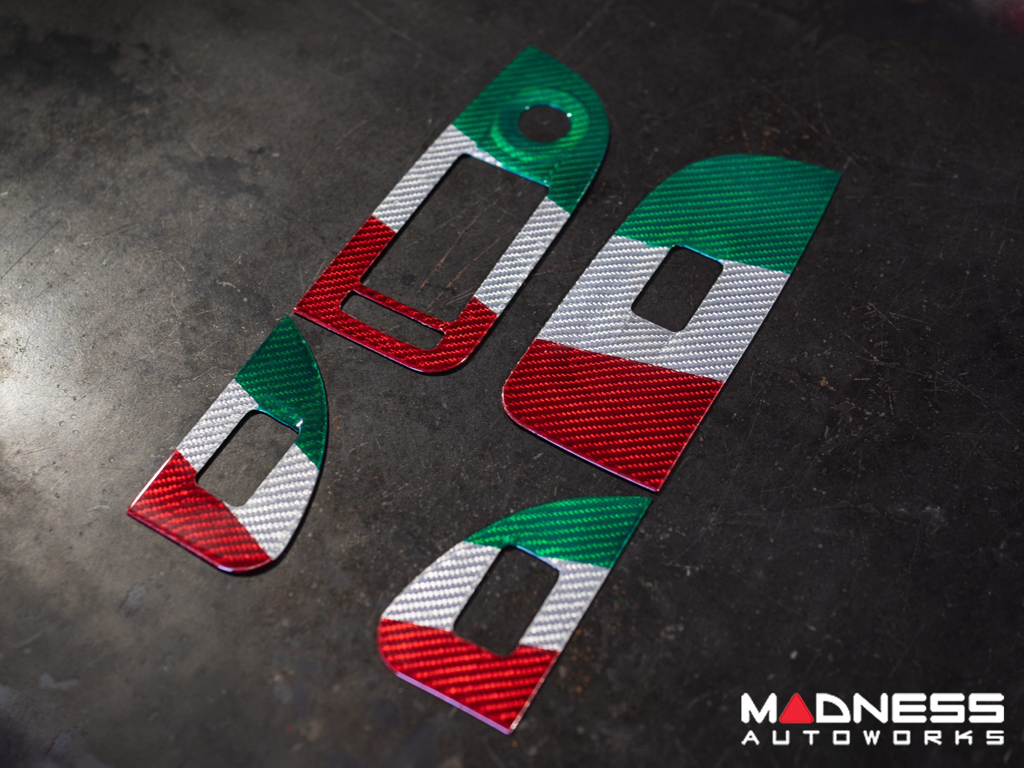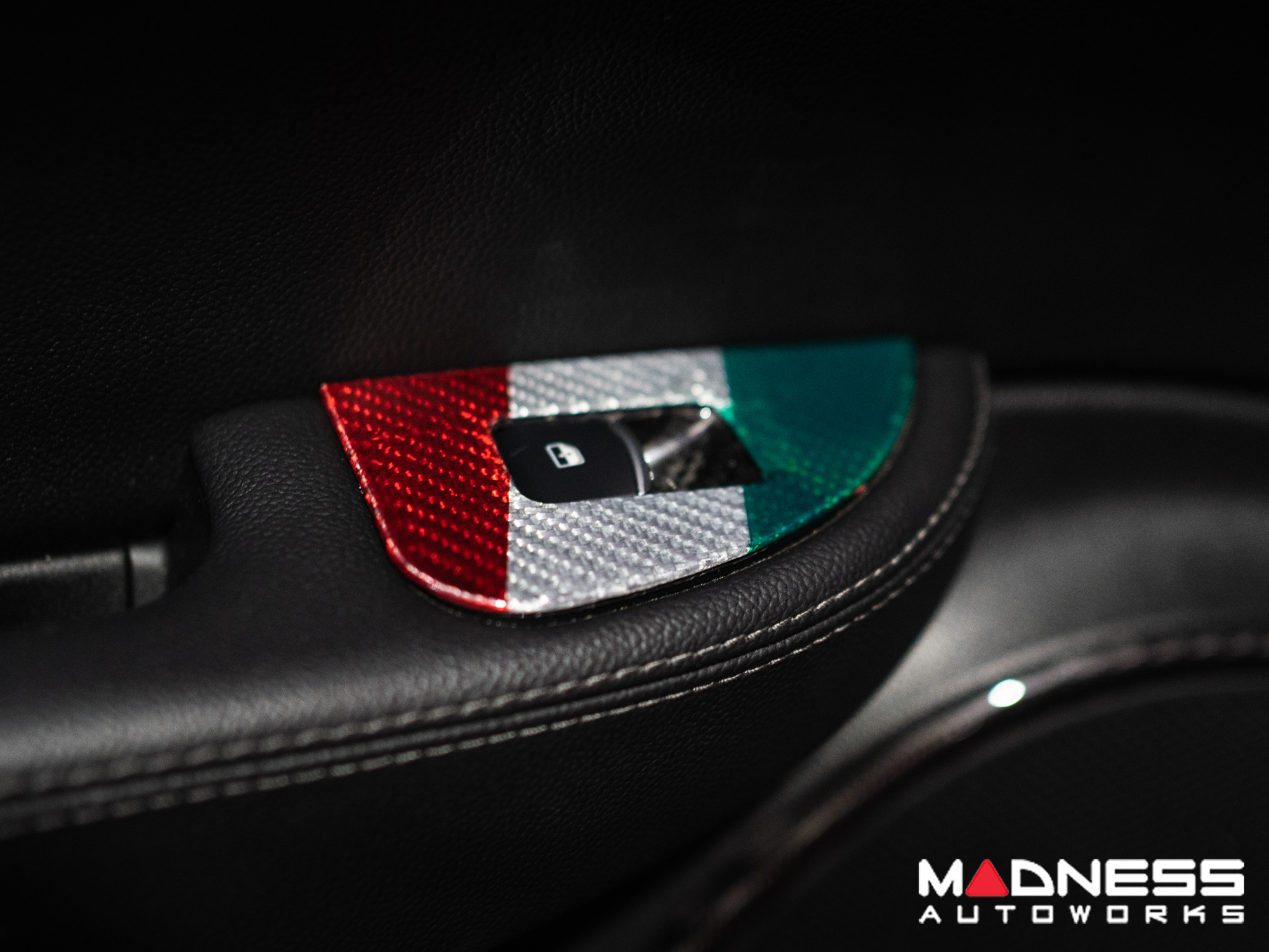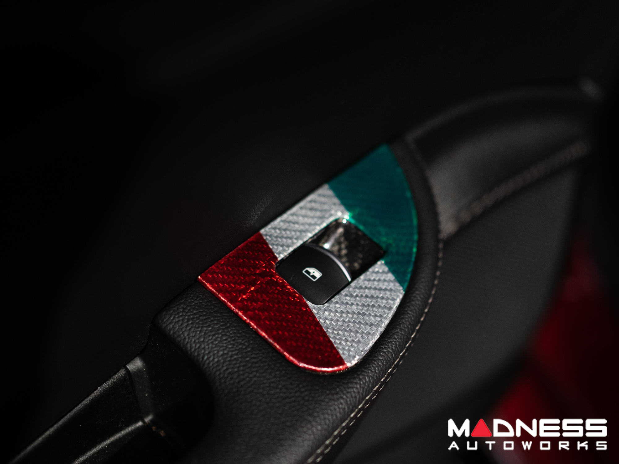 This Genuine Carbon Fiber Door Window Switch Trim Kit is designed to fit over the factory door window switch trim with ease and give them an upgraded look and feel. This version is manufactured in a Custom Italian Theme for that extra detail for all you Italian Fans out there.