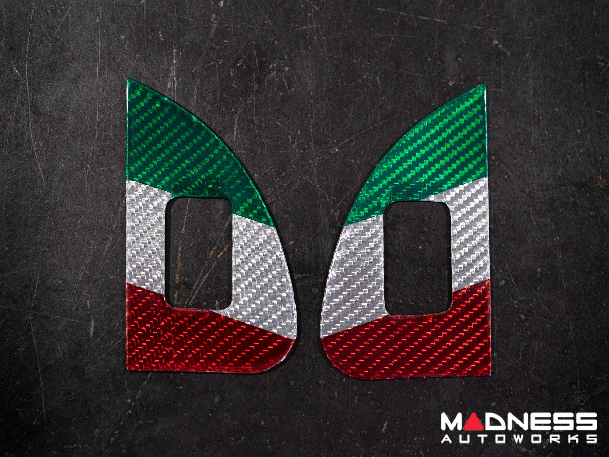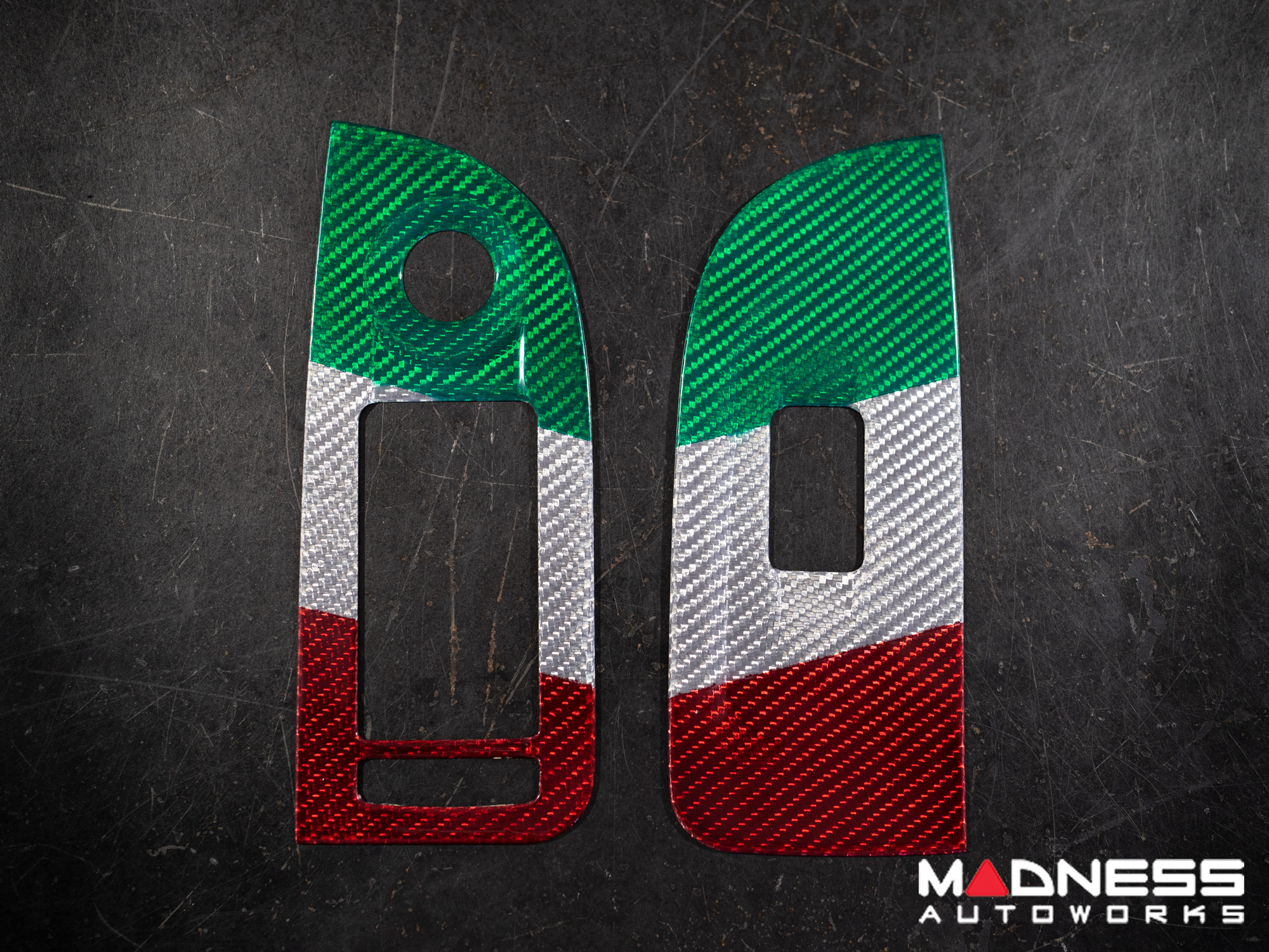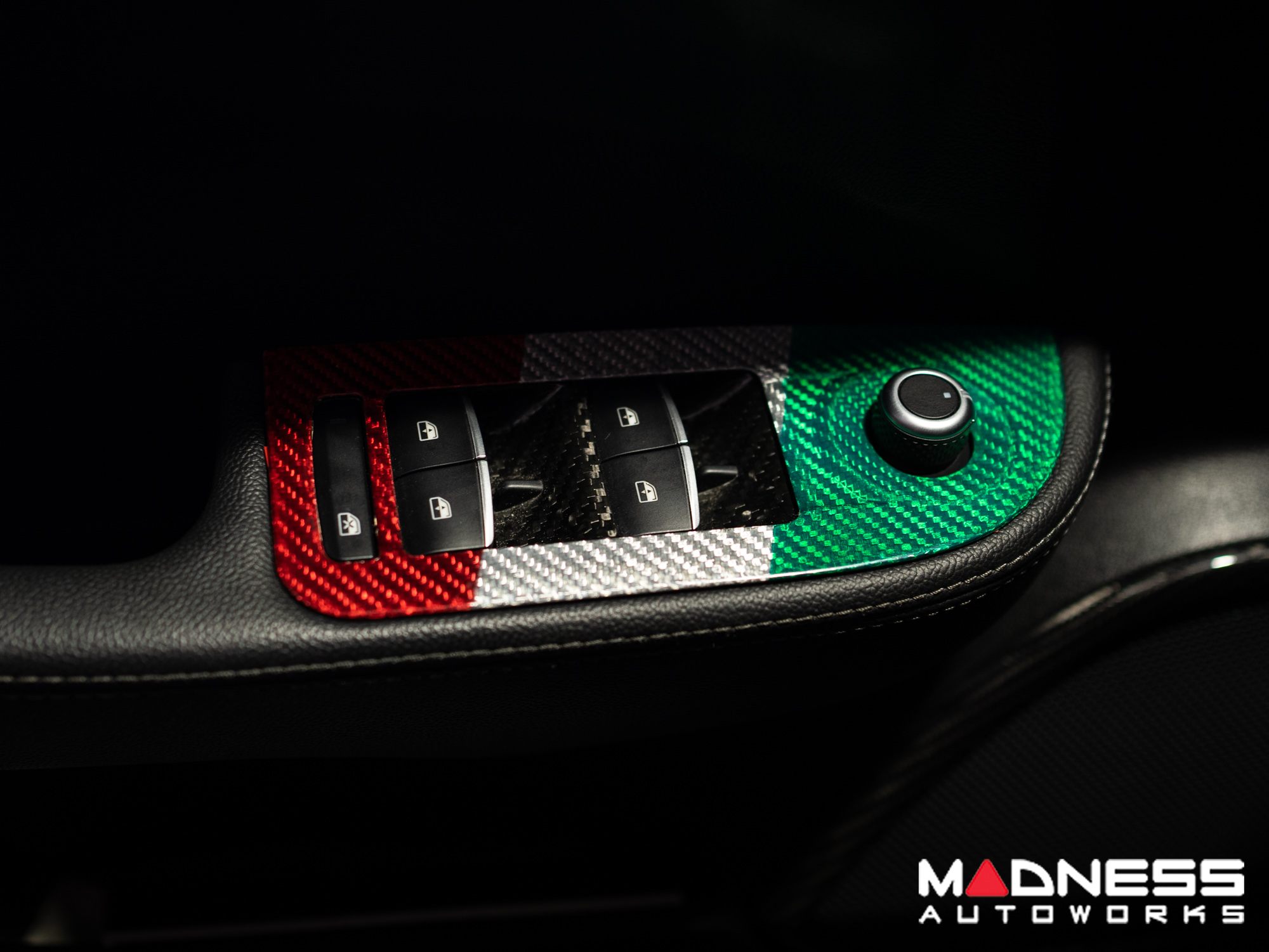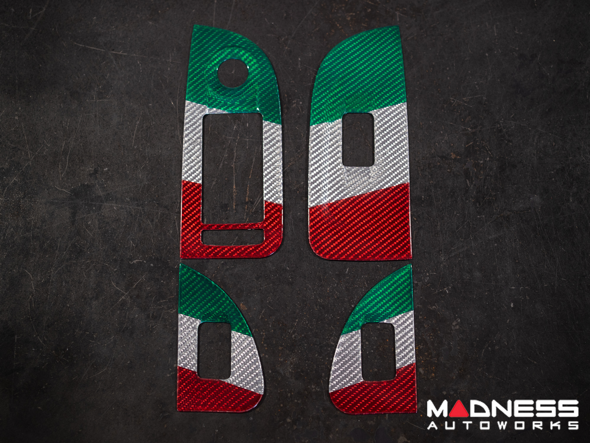 This Genuine Carbon Fiber Door Window Switch Trim Kit is designed to fit over the factory door window switch trim with ease and give them an upgraded look and feel. This version is manufactured in a Custom Italian Theme for that extra detail for all you Italian Fans out there.