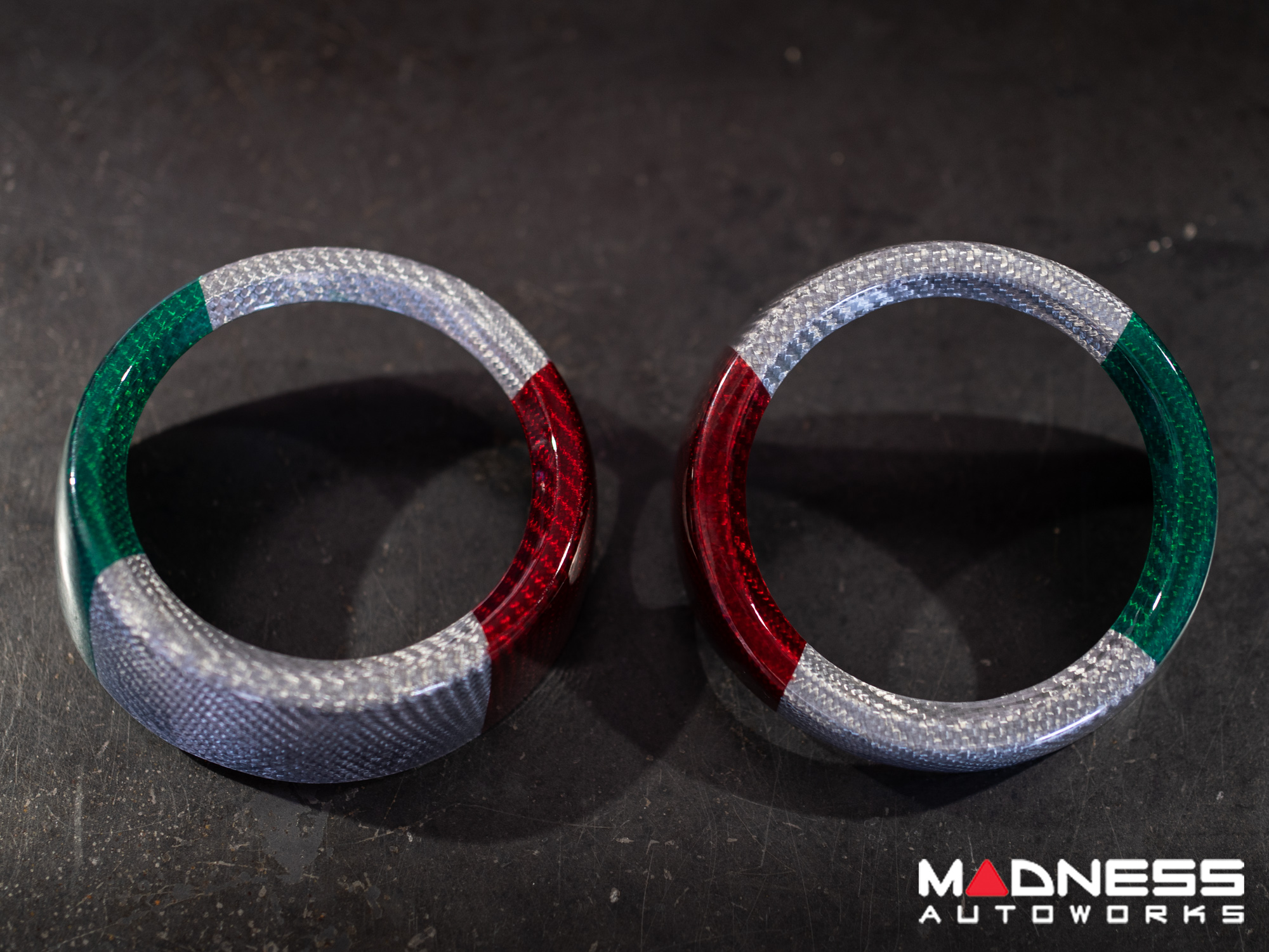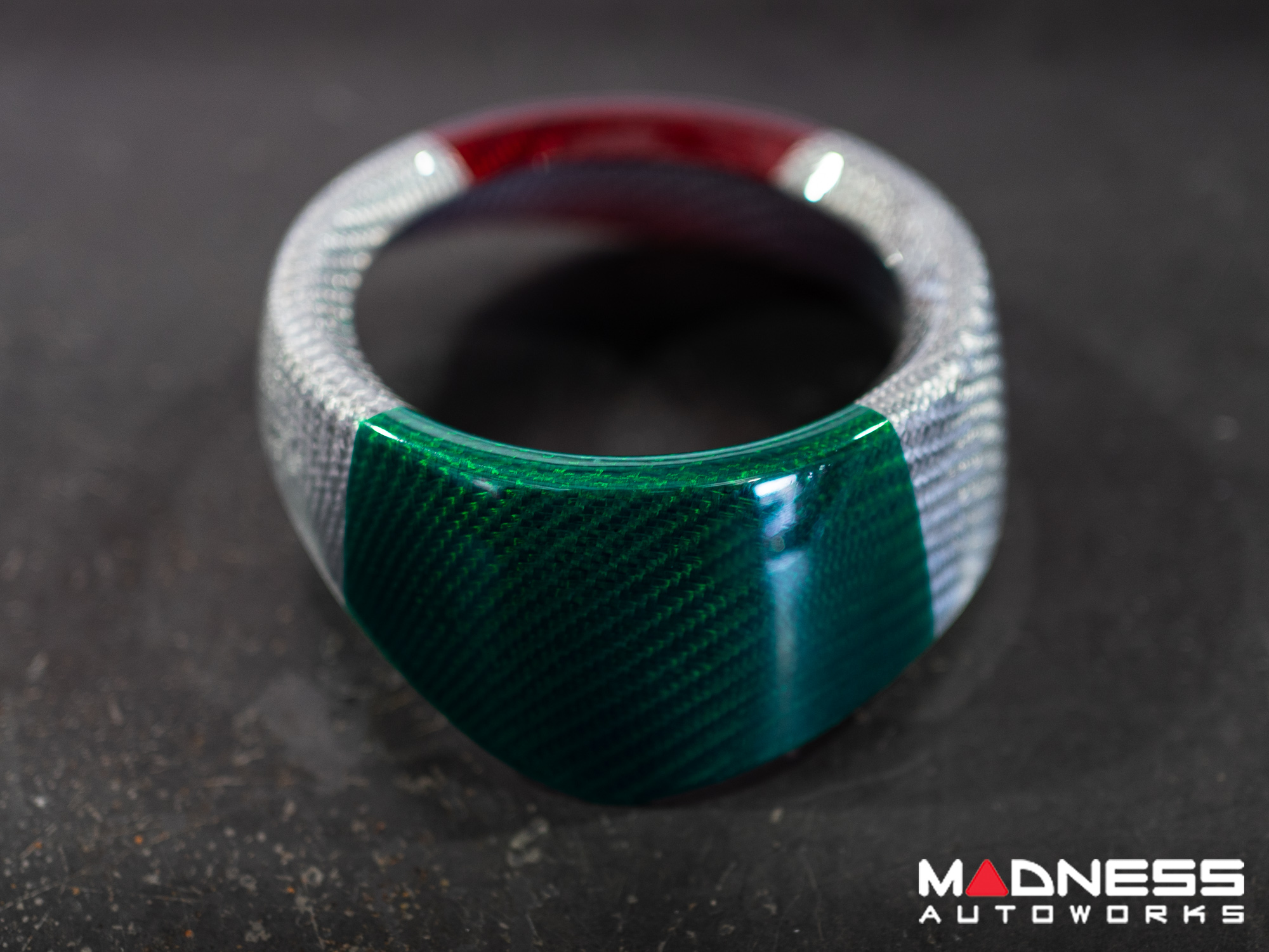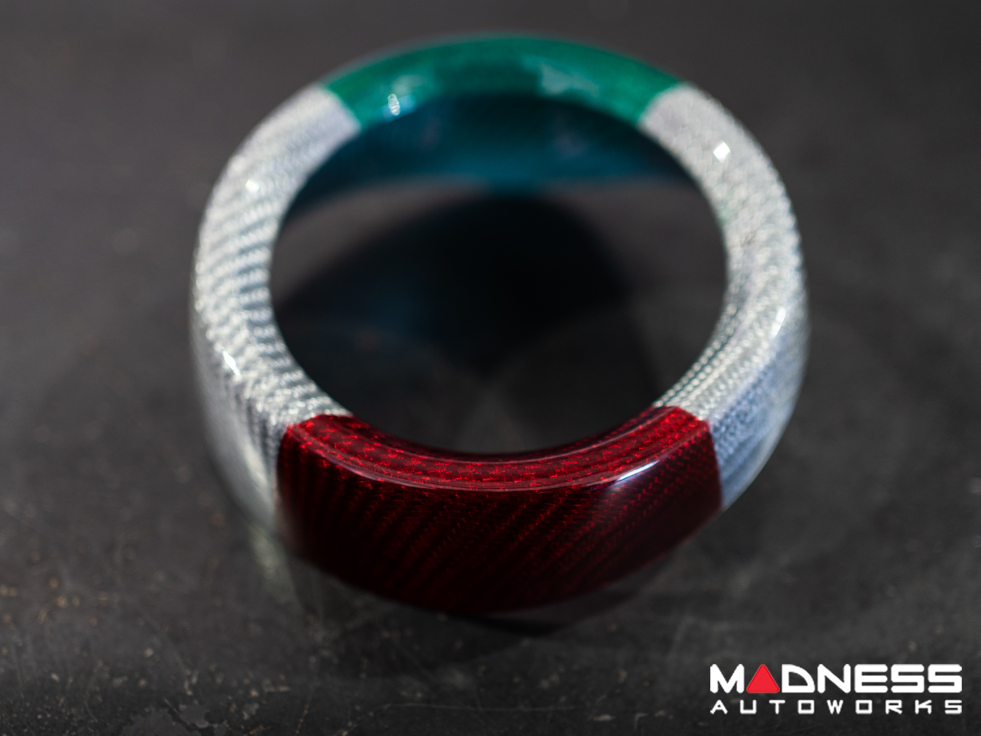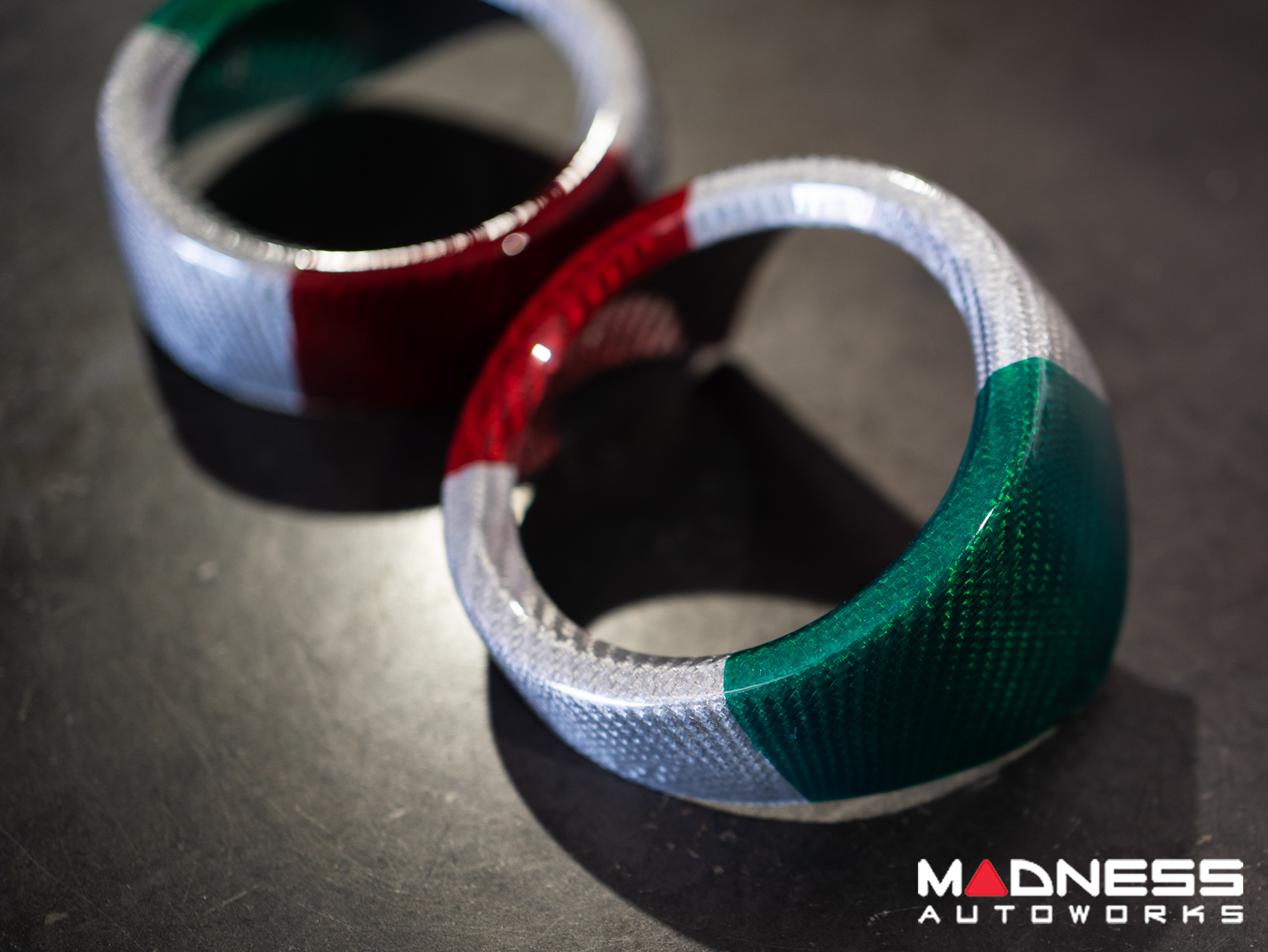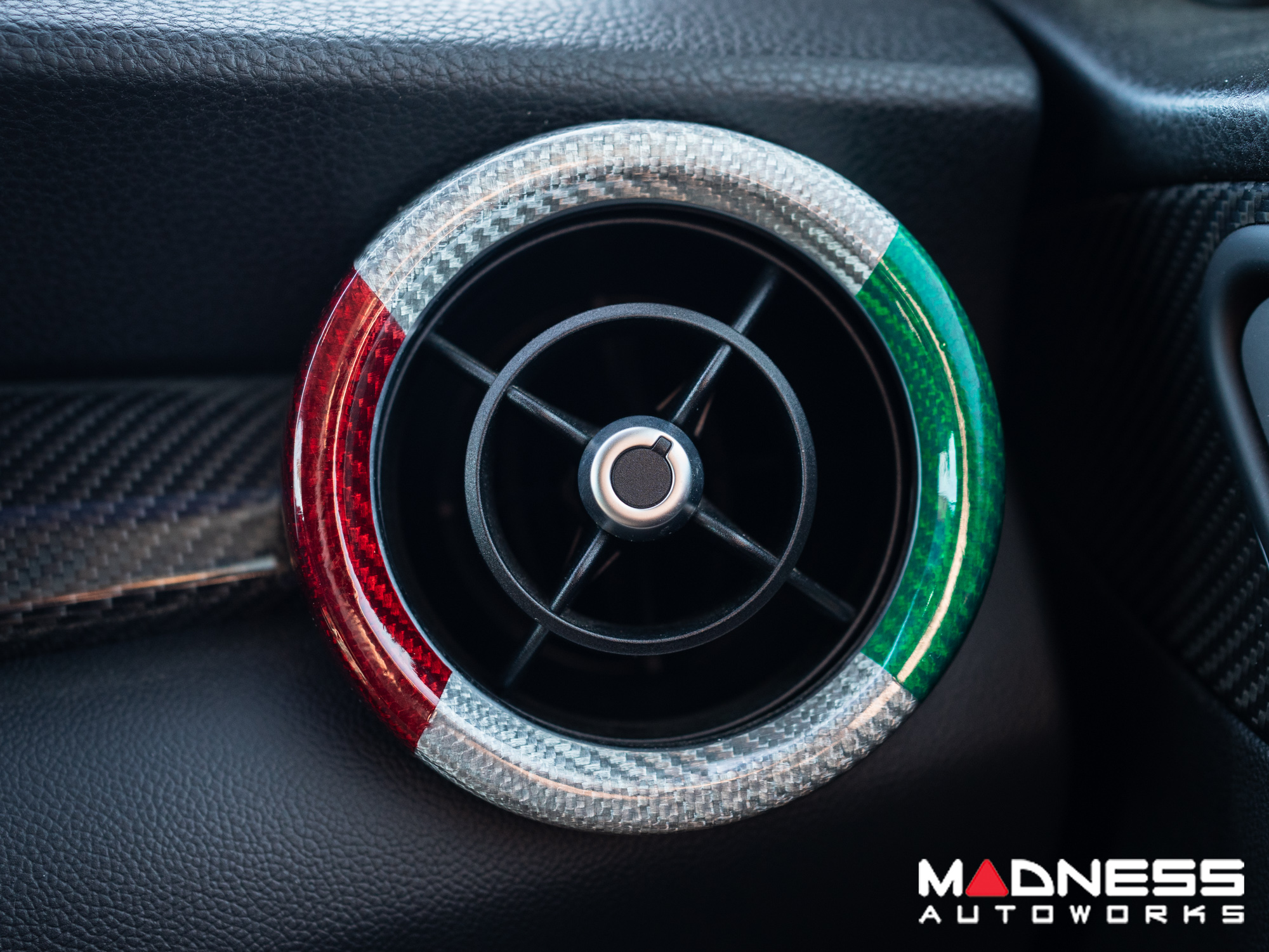 Designed and manufactured for easy and quick installation. Upgrade the interior of your Stelvio in minutes with this set of front Carbon Fiber Air Vent Covers. This set comes in a unique Italian Theme featuring the colors of the Italian Flag.