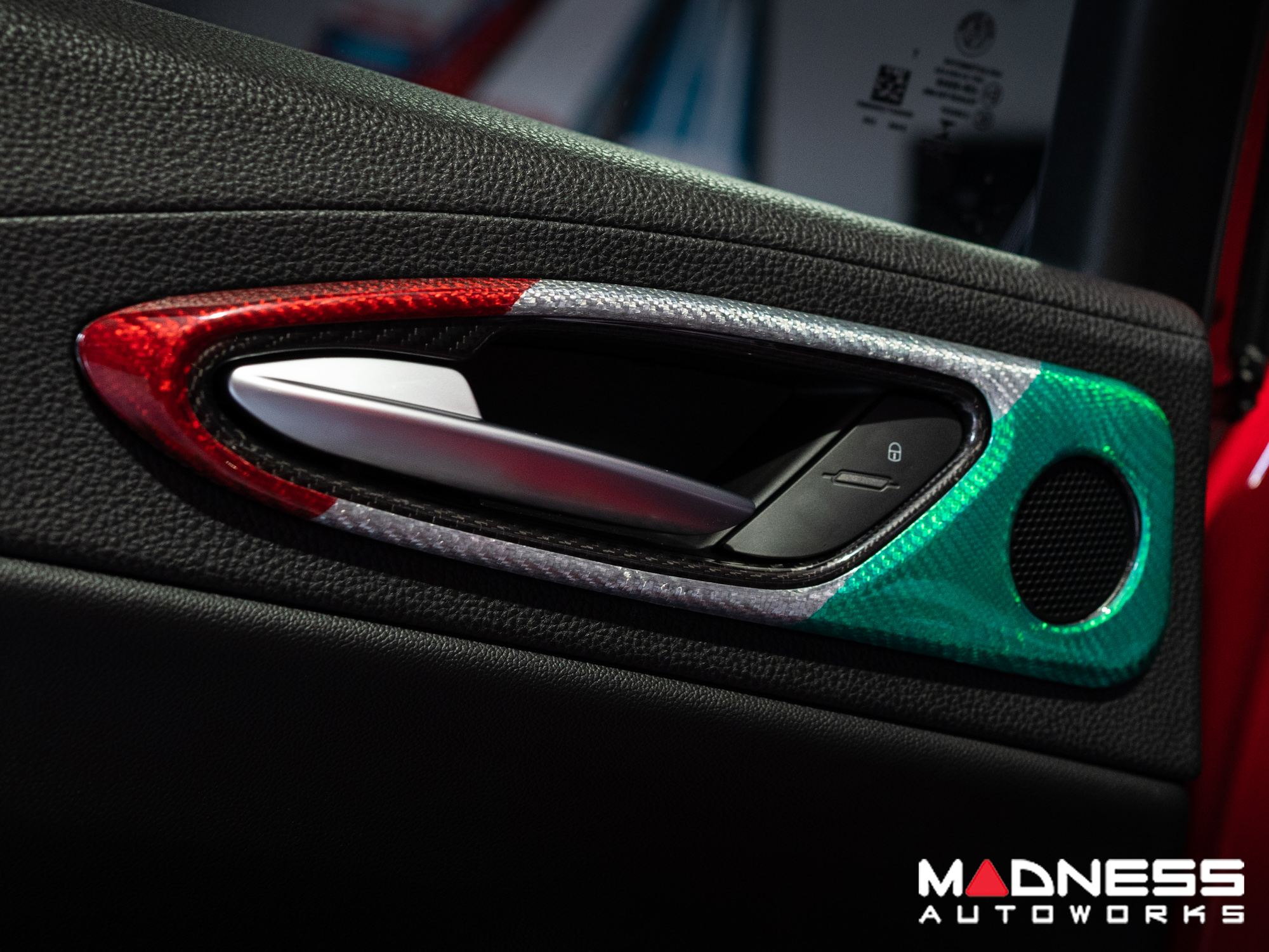 Alfa Romeo Giulia Interior Door Handle Surround Trim Kit - Carbon Fiber - Italian Theme - Feroce Carbon