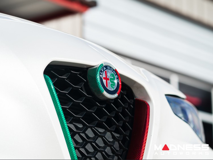 Alfa Romeo Giulia Front Emblem Frame Cover - Carbon Fiber - Italian Theme - Feroce Carbon
