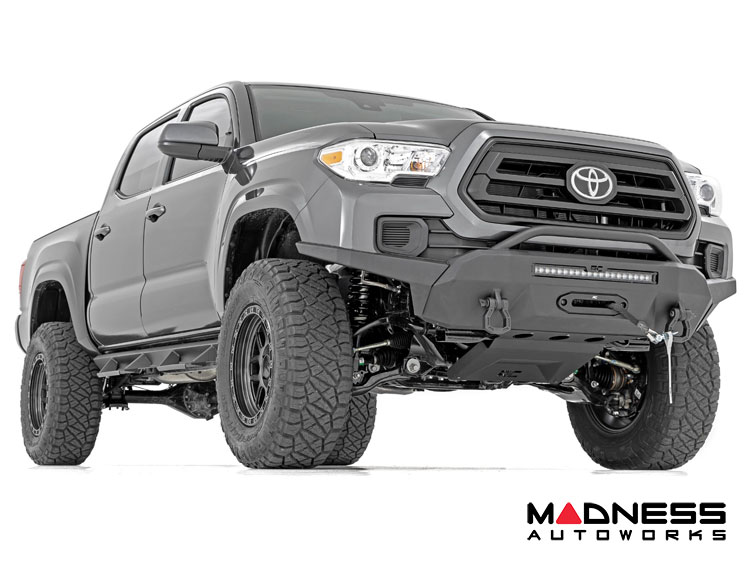 High Approach Angles and Stylish Appearance! Give your Tacoma's front-end a unique look Rough Country’s High Clearance Bumper Kit. These modular bumper kits ship in a variety of options giving you the opportunity to build your own bumper! Featuring high sweeping angles, and stylish good looks this bumper is sure to set you apart from the pack.