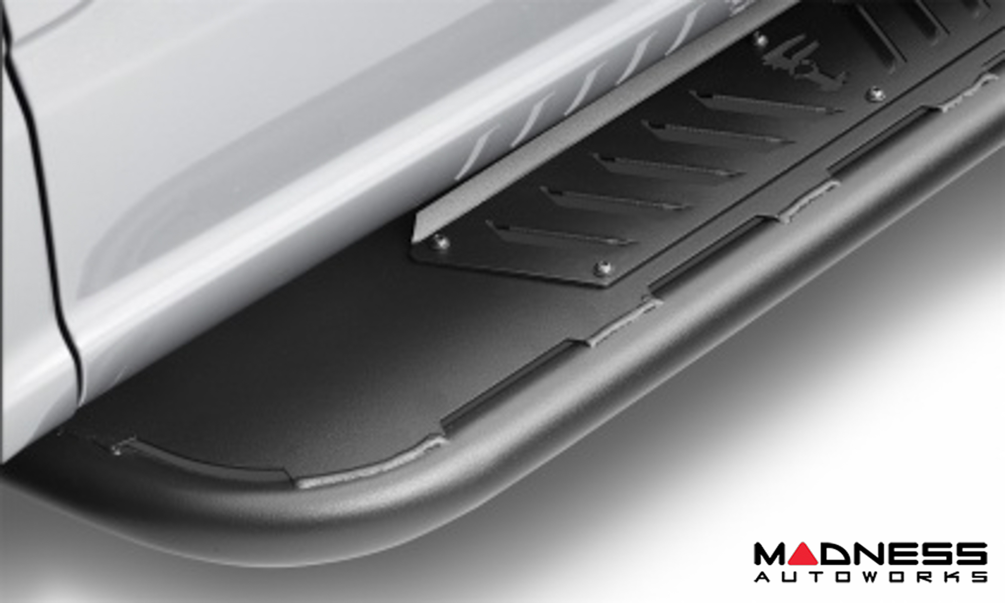 Constructed with a sturdy 1.75-inch OD perimeter tube supporting a fully-welded 12-gauge steel top plate, the Roan finds the line between a conventional running board and an armored side step and then obliterates it! Each board features rugged bolt-on step pads with raised louvers, so your foot finds traction in any weather condition. Easily paint the detachable step plates to match or contrast your truck's paint for a stunning custom look. With sturdy 3/16"-thick steel mounting brackets, the Roan provides uncompromising support while allowing inboard/outboard adjustability, delivering a superior fitment with a look that absolutely ravages traditional running boards. Add in the confidence of a Lifetime Craftsmanship Warranty and a full 5-years finish protection and Roan Running Boards are clearly in a class all their own.