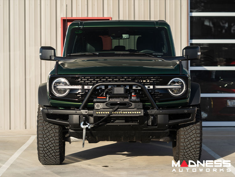 Looking to take your off-roading game to the next level? Then you need a High Winch Mount! This bad boy works with factory steel modular bumpers for your Ford Bronco and allows the installation of 9500lb or larger winches - perfect for those who like to live on the wild side. Our High Winch Mount also includes an optional 20-inch light bar so you can see what you're getting into. So whether you're an experienced off-roader or just looking to take your adventures to new heights, the High Winch Mount is a must-have!