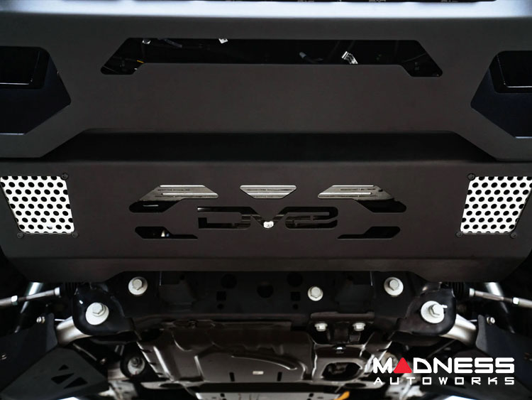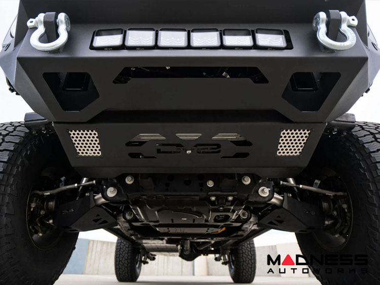 The DV8 Bronco Front Skid Plate was designed to work with both the original OEM bumpers or our aftermarket Bronco bumpers.