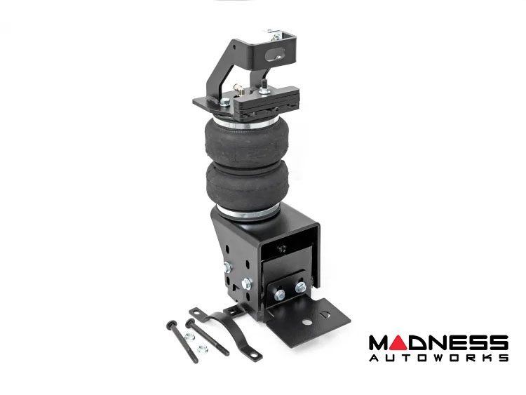 Rough Country's Rear Air Spring Kit features two RC branded high-quality double convoluted airbags complemented with DOT-approved airlines. Whether you plan on towing or hauling in the not-so-distant future Rough Country's Air Spring kit is the must-have accessory to ensure that your trailer is level reducing the weight off of the tongue of your trailer.  Each kit offers 1/4" push connector fittings and all of the bracketry needed to ensure installation is lightning fast and secure! Rough Country's Air Spring kit provides up to 5,000 lbs of load support to ensure that you experience less sway and bottoming out when braking and steering!