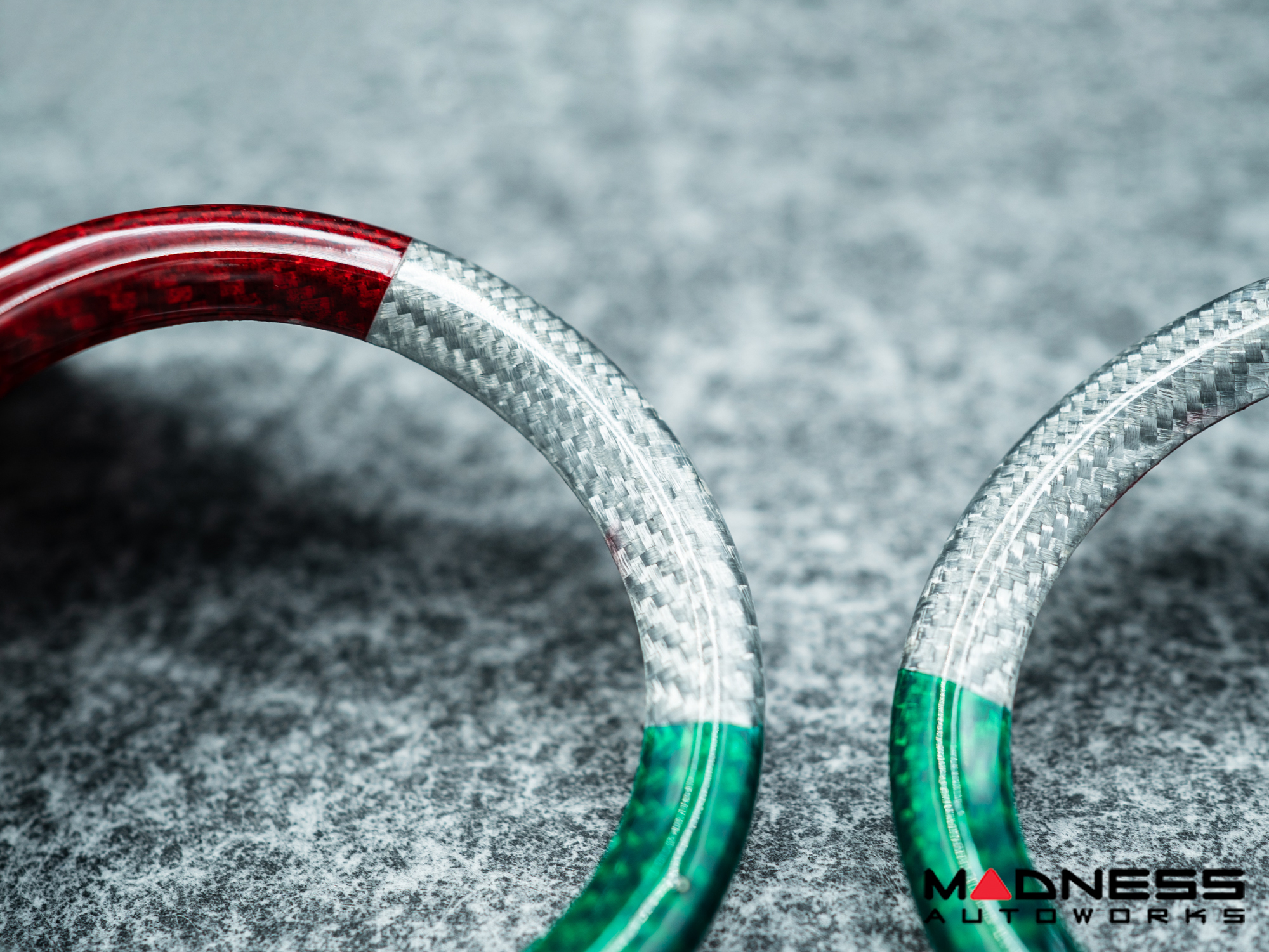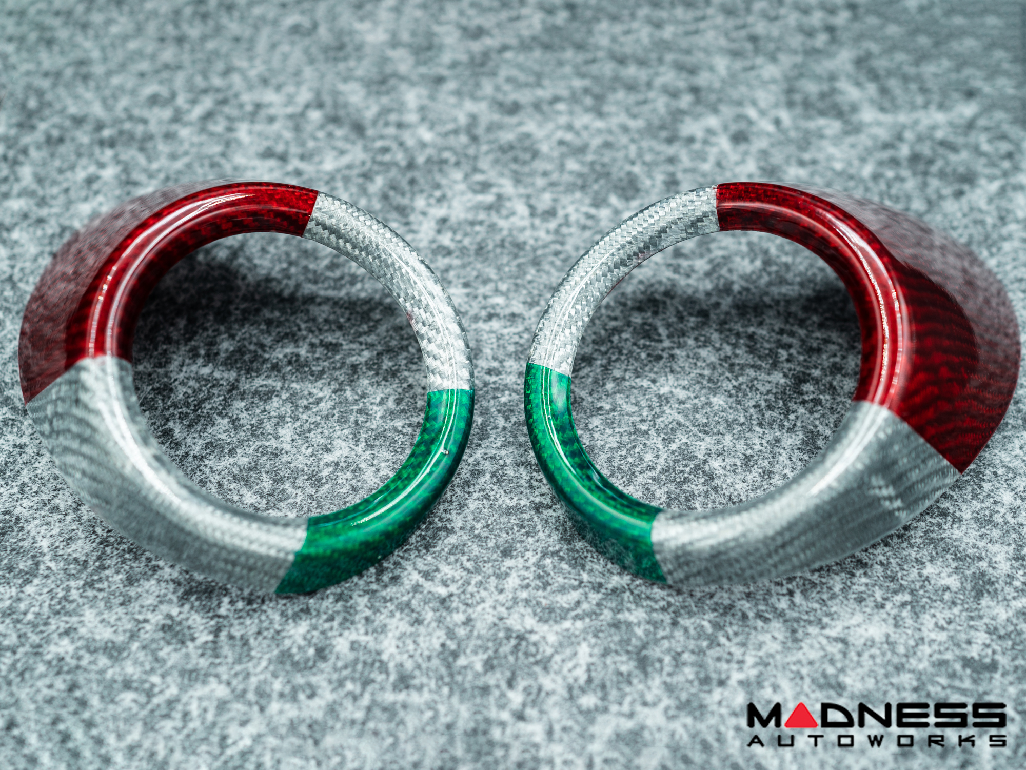 This Italian Themed Carbon Fiber Rear Air Vent Trim Kit is designed to fit over the factory rear air vents and instantly give your interior a nice custom touch.